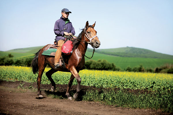 北京,六月的盛夏。哈達(dá)鐵,我的騎術(shù)啟蒙教練,打來電話?!凹亦l(xiāng)有個騎馬活動,你跟我去一趟吧?!崩瞎f話,總有股特別的味道,不是命令更不是請求,卻讓人有種必須追隨的沖動。于是,在南苑機(jī)場,和幾十位馬友聚了,先飛海拉爾,再乘中巴,到達(dá)活動的集合點(diǎn),牙克石。那是大興安嶺下來,進(jìn)入呼倫貝爾草原的地方。 就像進(jìn)攻前的作戰(zhàn)會,暗暗的會議室里, 對著巨大的等高線標(biāo)示地圖,活動的總指揮,老獵人,巴樹恒書記,作了出發(fā)前的部署:"我們將用兩天的時間,騎行進(jìn)入大興安嶺西麓,以逆時針的方向,劃一個圓,回到出發(fā)地,一百公里的圈程。一路上,要翻山嶺,要鉆山溝。道路么,就是在原始森林、草甸、溪水中,整個馬隊,自己踩出一條路?!?/div> 活動的主題:牙克石騎馬日。 活動的要求:安全。 會議,大致就是這樣了。第一次參加這樣的長途穿越,有種新奇和期待。黑暗中,找到自己的木屋,洗洗睡了。 阿甘在我身邊 第二天早餐后,每個人多了一個綠色軍挎包,里面是兩天的給養(yǎng)。然后,每人分到了自己的馬。我分到了一匹黃色的小馬,臀部有烙號:14。于是,我就給小黃馬起了名字,“黃14”。名字是有來歷的。 它取自“黃色14號!”不知道的,可以搜索一下。這是一個偉大的稱號,屬于二戰(zhàn)德國王牌飛行員馬爾塞尤,一個我喜歡的故事。馬爾塞尤告訴了世界,擊落敵機(jī),可以是一種藝術(shù)。 活動的組織是嚴(yán)密的,我們被分成幾個小組:紅色、黃色、粉色等小組,我在粉組,“黃14”的耳下,掛著一根粉色的標(biāo)識帶子。粉組組長,老石,北京某公司董事長。壯壯的,篤厚沉穩(wěn),總是帶著讓人信賴的微笑,是有著20多年野外騎乘經(jīng)驗的北京馬主。 組員之一,白衫,女,央視的編導(dǎo),聽說專門負(fù)責(zé)給崔永元攢節(jié)目。2年左右的騎齡。 組員之二,張江霖,女,北京某公司董事長。經(jīng)??吹剿谌珖R術(shù)比賽做裁判。2年左右騎齡。 組員之三,楚喬,女,央視五頻道的編輯。西部繞桶賽的佼佼者,有些騎功,在北京有自己的馬。 當(dāng)然,粉組還有幾個組員,清一色好騎手。全是男的,就,不介紹了??傊?,粉組的陣容,還是,挺像樣的。 紀(jì)律宣布了:原始森林中,依組次序行進(jìn)(以便請點(diǎn)人數(shù));不許掉隊(有猛獸);不許抽煙(防火);解(野)手的,兩人以上陪護(hù)。 火力也布置了:隊伍首尾,都有一支槍。 然后,就出發(fā)了。 我們一騎緊跟著一騎,在密林中鉆行。隊伍中大部分是三河馬。這些看起來小小的馬。有著出色的本領(lǐng):遇山,無論多陡,能上能下;遇林,能鉆能繞;遇水,能趟能跳。巴書記領(lǐng)頭,他會看草色,避開沼澤、陷坑,大家跟著他,幾十騎走過,已經(jīng)踩出一條依稀的路徑。我的“黃14”,一如他的綽號。聰明、勇敢、忠實。幾個小時后,我們已經(jīng)在內(nèi)心契合了。我可以想跑就跑、想停就停。有這樣的伙伴,此行怎能不爽!于是,想起發(fā)現(xiàn)“黃14”的伯樂。 我們的阿甘:阿甘的原型是個美國兵。他的身上有著黃繼光挺身而上的勇氣和雷鋒焦裕祿式的奉獻(xiàn)。我喜歡阿甘,一個純粹的理想化身。難忘阿甘,希冀著能與這樣的人為伍。當(dāng)然,這樣的人,在現(xiàn)今世界中,比較,難見到的。這次,在北方的大興安嶺上,我看見了。而且,一次就看見兩個。一個叫李勇鋼,另一個叫王朝暉。 李勇鋼,是黑美人馬術(shù)論壇的主人,也是這次活動的發(fā)起者。多年來,勇鋼同志一貫樸實的為馬界奉獻(xiàn)著,大家叫他阿甘。 王朝暉,北京的馬主,人稱暉子。見過一兩次面,聽說他有項本領(lǐng):多難對付的馬、不讓上籠頭的生馬,他都能捋順。 這兩個人,解決了這次活動的一個最大難題:安全。客觀地說,在這百里穿行中,每一騎會遇到幾十次出事機(jī)會,那么這幾十騎加起來,就是幾十的平方,幾百次出事的可能了。深山老林里,摔傷個人,怎么救護(hù)呢?那里面,別說救護(hù)車,手推車也進(jìn)不去。那就只有一條路:整個穿行中,不能摔人,根本就不能摔下來。聽起來天方夜譚,不能置信。 但是,世界上總有奇跡出現(xiàn)(特別,是在有阿甘出現(xiàn)的時候)。后來知道,阿甘們是這么干的:他們在大隊之前,就背了行囊到牙克石。在老巴書記的關(guān)照下、在當(dāng)?shù)亟M織的配合下,阿甘們開始找馬。阿甘們的目標(biāo):找最安全的好馬。標(biāo)準(zhǔn)是嚴(yán)格的:馬要會基本騎術(shù)技能(有些馬,經(jīng)過阿甘們突擊培訓(xùn),也過關(guān)了),要溫順、健康、耐力……找了一撥又一撥,當(dāng)?shù)氐鸟R找光了,就去草原找;草原上找光了,又請巴書記從東旗調(diào);還是不夠,那么,挖地三尺,在拉車的馱馬里找(后來,真的有匹馱馬入隊,表現(xiàn)不錯)。 阿甘們這么干,當(dāng)?shù)氐鸟R倌們有意見了:這兩個人真煩,不配合了。前面說過,敢稱阿甘的,那都是兼具了黃繼光和雷鋒焦裕祿的全面品質(zhì)的。所以,在草原烈酒的配合下,一場場的思想政治工作,一波波的現(xiàn)代馬文化洗禮,春雨般撒進(jìn)馬倌們干渴的心田。馬倌們看到:沒人能近身的馬,阿甘給上了鞍子,又踢又立的馬,阿甘給騎順了。他們還看到,阿甘們給每一匹選中的馬,做了編號,起了名字。他們不知道的是,阿甘們一夜夜的研究、討論,將幾十匹馬,按每匹馬的特性,參考即將到達(dá)的每個馬友的特點(diǎn),