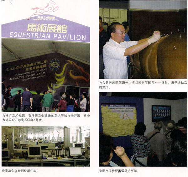 2007年12月9日,在香港沙田賽馬場舉行了每年一屆的國泰航空香港國際賽(1200米的短途錦標,獎金1200萬港元;1600米的一哩錦標,獎金1600萬港元;2000米的”香港杯’,獎金2000萬港元;2400米的“香港瓶”,獎金1400萬港元),經(jīng)過激烈爭奪,中國香港的4歲騸馬“蓮花生輝”、5歲騸馬“好爸爸”,阿聯(lián)酋5歲騙馬“威滿蹄”、法國5歲雄馬“迪諾醫(yī)生”分獲冠軍。中國香港勇獲兩項短距離的冠軍并連續(xù)第5年獲得短途錦標。 香港國際賽結束的同時也拉開了奧運會馬術比賽的序幕。利用比賽的間隙我參觀了奧運會馬術場地并進行了采訪。 香港賽馬會董事局主席陳祖澤先生表示:香港政府和奧運馬術場地提供者--香港馬會將全力以赴,為2008年北京奧運會辦成歷史上最好的奧運會而努力。 記者:香港賽馬會作為奧運會馬術賽場的提供者,出資8億港幣,目前建好了哪些場地? 麥建華:已建成的奧運會的主賽場為80米*100米,在這里將進行場地障礙賽和盛裝舞步的比賽,還有一個室內(nèi)空調練習場、一個室外草地練習場和一個室外沙地練習場,還將上水高爾夫球場改建成個馬術越野賽場地。 記者:馬術比賽是2005年7月份在新加坡117次全會中決定在香港舉行的,這段時間給您留下最深刻的印象是什么? 麥建華:首先是我們在一周左右的時間里就做出了迅速的反應,并拿出了五套方案。因為和奧運主辦城市青島相比我們整整晚了五年,我們必須采取一種特殊的策略才能達成把“北京奧運”辦成最好的一屆奧運會的目標。這段時間我們通宵達旦的工作,這在我一生中還是第一次。第二個深刻的印象就是2007年的8月份的奧運測試賽,當時香港遇上了特大的暴雨,場地能不能經(jīng)受住考驗,國際奧委會主席羅格和國際馬聯(lián)主席約旦公主都來到了香港。功夫不負有心人,我們都虛驚了一場,場地的排水系統(tǒng)非常出色,選手們在雨中比賽不僅場地沒有積水,馬跑起來,腳下也不滑,可能是當時太過提心吊膽,所以印象深刻。 記者:雅典奧運會由于馬匹服用興奮劑,三塊獎牌改寫,我們的興奮劑檢測中心能夠承擔奧運的任務嗎? 麥建華:當然可以,你剛才談到雅典奧運會,你知道嗎?雅典奧運會中的四個問題B樣本中有三個就是送到我們這里檢測的,我們43個工作人員每年要完成來自世界各地的18000多個樣本的檢測,基本沒出過差錯,這在世界上是少見的。 記者:我們聽說馬到香港入關只需要一個小時,確切嗎, 麥建華:不確切,這個時間應該除以2,我們的目標是30分鐘,為此我們在海關專門設立了一個馬匹專用通道。你知道奧運會馬術章程中首先強調的是,馬匹的利益高于官員的利益。 記者:現(xiàn)在強調民居工程,那參賽馬的居室情況如何? 麥建華:我們的馬房是世界一流的,因為8月的香港悶熱而潮濕,我們采用了節(jié)能30%的全天候恒溫系統(tǒng);由于奧運會的馬匹絕大多數(shù)為又高又壯的溫血馬,我們把馬房擴大為長3.5米和寬3.5米。我們的重點是向上發(fā)展,增大頂部空間,確??諝饬魍?每個馬房后面有一扇窗口,來增加光線,目的是讓馬有個快樂的環(huán)境。 記者:您剛才講到場地的滲水很好,它的結構是怎么樣的? 麥建華:地基主要分為四層,最底部是去水管,中間部分是沙石層,上層鋪設疏術膠席,最頂層再用草地或纖維物料覆蓋。香港有一百多年的賽馬歷史,這方面經(jīng)驗豐富。 記者:我到主場地去了一下,地是白的,走近了看,沙子里面還摻了東西,是什么原因? 麥建華:這是綜合考慮的結果,白色很干凈,夜晚效果更好,場地的材料是首次引進的,其中包括碎布、專用沙粒及纖維,我們用重型混土機將其混合。經(jīng)過試驗,場地不僅美觀,而且馬匹在奔跑和跳躍時有效地減輕了著地的沖擊力。 記者:奧運會馬術比賽在香港舉行必將使得香港的馬術運動更快發(fā)展,香港賽馬會今后將對中國內(nèi)地的馬術運動怎樣支持呢? 麥建華:我記得最早于1986年,我們就開始無償?shù)靥峁R匹,我們先后送出了近600匹馬。為了馬的福利,當時我們提出了三個要求:一個是要有足夠的馴養(yǎng)人員;二是重視馬匹的健康同時在馬得病的時候能夠得到及時的治療;三是不能用于商業(yè)比賽。目前每年香港賽馬會大約有三百匹馬退役,其中一百匹左右送給中國馬術協(xié)會以支持內(nèi)地的馬術運動。每年我們都會派獸醫(yī)和技術人員到內(nèi)地檢查馬匹的健康狀況并進行技術培訓,每年還要邀請內(nèi)地馬術從業(yè)人員到香港進修。我們將會一如既往的支持內(nèi)地馬術運動的發(fā)展,共同分享奧運馬術比賽留下的寶貴財富。 記者:悉尼和雅典奧運會的馬術場地投資巨大,至今也未能很好的利用,您對此有何見解? 麥建華:我們從一開始設計方案就有一個原則,就是70%利用現(xiàn)有設施,其余30%中還有相當比例的臨時建筑。奧運結束后70%依舊進行傳統(tǒng)的香港賽馬,臨時建筑會及時拆除,剩下那部分可用于香港馬術運動及其他項目的訓練使用,當然香港市民中的愛馬人士無疑是最大的受益者。 記者:現(xiàn)在距奧運比賽還有不到10個月的時間,下一步建設的重點是什么? 麥建華:接下來我們將翻新香港體育學院大樓,將其變?yōu)閵W運會馬術比賽的指揮中心,另一個就是在主賽場搭建能容納18000名觀眾的臨時看臺,當然奧運馬術的其他設施也要做小規(guī)模的調整。 記者:剛才您的談話涉及到了綠色奧運