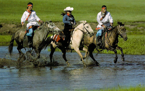 眾所周知,在世界的三大馬文化中,草原游牧文化是最古老的。除了歐洲、非洲、美洲草原,身居亞洲腹地的蒙古草原游牧文化的歷史是最悠久的,歐洲貴族馬文化次之。美國西部牛仔文化是最年輕的,它是在開發(fā)美國西部養(yǎng)牛趕牛的過程中而形成的文化。美國西部牛仔文化和當(dāng)?shù)赝林?-印地安人也有著密不可分的關(guān)系,而印地安人很可能就是蒙古人的后代。據(jù)說在一萬年前左右,蒙古人從蒙古草原一直向北穿過西伯利亞,跨過白令海峽,進(jìn)入美洲大陸,成為了這片土地的主人--印地安人。由于美國西部牛仔文化發(fā)源于印地安人所在的區(qū)域,所以必然受到印地安文化的影響。從這個意義上說,美國西部牛仔文化又回到了蒙古草原的故鄉(xiāng)。這也是兩種馬文化的一次大碰撞。比賽是要分出勝負(fù)的,兩種馬文化各有其特長,所以競賽規(guī)則就顯得非常重要。因?yàn)槿魏伪荣惗家胶侠恚茱@然,草原耐力賽、上馬絆、套馬是元和牧人隊(duì)的強(qiáng)項(xiàng)而繞桶賽、繞蘇魯錠是都市牛仔隊(duì)的強(qiáng)項(xiàng)。 第一站,天堂草原的成吉思汗瞭望山 從北京沿八達(dá)嶺高速公路一直向北過張家口、張北、太仆寺旗到錫林浩特市,再向東140公里就到了西烏珠穆沁旗。 相傳在800多年前,成吉思汗曾路過此地,發(fā)現(xiàn)自己兩匹心愛的馬丟失了,便登上了山頂向遠(yuǎn)處張望,發(fā)現(xiàn)它們正在安然地吃草,于是后人就把這座山叫作成吉思汗瞭望山。 它位于天堂草原的一端,也就是著名的西烏旗全國草原耐力賽的起點(diǎn)。 2005年7月,西烏旗為了恢復(fù)馬背文化舉行了800匹馬的大型馬文化節(jié),在第一屆全國草原耐力賽上,就以207匹馬打破了1939年在英國利物浦安翠賽馬場創(chuàng)造的一場比賽66匹馬的吉尼斯世界紀(jì)錄。我們7月16日到達(dá)西烏旗,第三屆西烏珠穆沁旗全國草原耐力賽于7月17日早上7點(diǎn)開始,而我們將在7月18日參加對抗賽。第一場比賽是在天堂草原進(jìn)行的耐力賽,我們只跑1/10的路程,所以觀看比賽就成了一次難得的實(shí)戰(zhàn)演習(xí)…… 7月17日,都市牛仔隊(duì)一行,早早就來到了比賽現(xiàn)場。七月的草原上,晨霧才剛剛散去,留了一層薄薄的露珠,在花頭草尖。披件外套也還是會感覺到那風(fēng)里夾著的濕漉漉的清涼。參賽的馬匹已經(jīng)被主人們牽著在場內(nèi)就緒,只是選手都還遲遲沒有露面。 陰沉沉的天空開始滴雨,越下越大。透過雨簾看奔跑而來的騎手,感覺心像被突然撞了一下,那真是一群孩子,十來歲的樣子,卻如風(fēng)一樣從雨里跑來,眼睛里執(zhí)著地只有馬。 由于瞬間的強(qiáng)降雨,草原開始積水,小孩子們就光著腳站在雨水里,等待著馬匹的檢驗(yàn)。沒有傘,沒有雨衣,一個個孱弱的身軀在風(fēng)雨里抖得像片葉子,而從他們的臉上卻看不到絲毫的畏懼與慌張。 你,站在傘下,遠(yuǎn)望著感受著這場還沒開始的比賽帶來的持續(xù)的震撼。 槍響,上馬,出發(fā),其實(shí)真正能看到的動態(tài)鏡頭也就不過那兩分鐘,但這之間所離析出的分鏡頭卻讓你恒久難忘。大人們的渴求、孩子的勇猛,對前路的未知,都隨著震耳的馬蹄聲奔跑進(jìn)迷蒙的水霧里。而此時,人群開始向后轉(zhuǎn),跑向終點(diǎn)的方向。 等待的時間永遠(yuǎn)都是漫長的。當(dāng)?shù)谝黄ヱR飛奔而來時,你能聽到身邊安靜的人群開始躁動,接著尖叫之后便是無休止的沸騰。這個時候你是無法控制情緒的,淚水被孩子們不斷揚(yáng)起的馬鞭催了下來,那被收進(jìn)鏡頭的是怎樣的畫面?。∫粡垙堉蓺獾哪樕鲜菣M飛的泥水和堅(jiān)毅的眼神,即使到了最后一刻也還是倔強(qiáng)地加著鞭子嘴里吆喝著,相互趕超,那執(zhí)著是任誰都難以抗拒的感動。 才了解為什么忠勇與堅(jiān)毅是草原人民的定語,原來那是一種幼年時就埋下的情結(jié)。 比賽結(jié)果:紅山軍馬場的紅山一號和紅山二號兩匹駿馬獲得冠、亞軍。30.5公里用時46分40秒。當(dāng)人們都為東道主西烏旗又沒進(jìn)入前三名而惋惜時,旗長巴特爾一句話引起了人們的深思:我們要的是公平公正的品牌賽事,讓更多的人馬來參加比賽,了解西烏旗。我們雖然沒拿前三名,但我們是大贏家。 第二站,首戰(zhàn)3公里耐力賽 7月18日 萬事開頭難。第一場對陣,人、馬還不熟悉,安全是最大問題。朱和源隊(duì)長特別叮囑4位女騎手要保持騎乘的重心。 成吉思汗嘹望山有片難得的美麗草場,在這里我們邂逅了牧人隊(duì)的選手。相比起牛仔隊(duì)里的四哥,蘇老師這樣的老牛仔而言,眼前的對手清一色是孩子輩的。他們大多在20歲左右,甚至更小,但提到騎齡,最少的也在10年以上。 用淳善的巴特爾的話說:“用我們分給你們的馬比賽,那就根本不存在什么競爭?!狈纸o我們的馬的確從能力上懸殊較大,但大家本就是以友誼第一的心態(tài)走進(jìn)草原的,所以也就備鞍上馬,未見紛爭。 想來這荒莽的草原是第一次出現(xiàn)如此這般斑斕的景象吧。兩種文化在馬背上和諧地碰撞,語言不通的對手在馬背上達(dá)成了最原始的互通。在這場速度的競逐中,牧人隊(duì)拿了第一。目前的比分是10:4,牧人隊(duì)暫時領(lǐng)先。大家本無異議,倒是牧人隊(duì)長江樹軍的一句話讓我們哭笑不得:“真沒想到從城市里來的人騎馬能騎得這么好。為了你們的