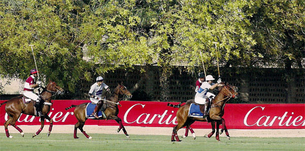 2007年3月30日,第二屆卡地亞迪拜國際馬球賽在中東之心迪拜的Desert Palm度假村舉行??ǖ貋喨蚩偛貌{德·福納斯先生、約旦王國公主Haya Bint Al Hussein以及著名國際影星莫尼卡·貝魯奇小姐出席了此次盛會。 卡地亞每年舉辦三項(xiàng)精采的馬球錦標(biāo)賽:歷史悠久的卡地亞皇家溫莎杯馬球賽、富有冒險(xiǎn)精神的瑞士莫里茨雪地馬球賽以及此次在迪拜舉行的草地馬球賽--將屬于精英份子的馬球運(yùn)動推向時(shí)尚風(fēng)格境界。今年,卡地亞非常榮耀地向您呈現(xiàn)在中東沙漠之心舉辦的第二屆迪拜馬球賽。 作為貴族運(yùn)動之一的馬球運(yùn)動,代表了卡地亞所推崇的精英生活觀念??ǖ貋喓婉R球的深厚淵源可以追溯到1983年,而1985年開始舉辦的卡地亞國際馬球賽更緊密地加深了卡地亞和馬球比賽的關(guān)系。卡地亞國際馬球賽是英國最受矚目的運(yùn)動競賽盛事,英國王儲查爾斯王子和哈利王子都是比賽騎士中的???。1986年,卡地亞豐富的想像力創(chuàng)造了馬球競賽的巔峰--在瑞士莫里茨舉行史無前例的雪地馬球賽。 |