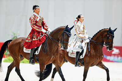 作為奧運會馬術(shù)比賽項目,盛裝舞步(Dressage)既是馬術(shù)的基礎(chǔ),又是騎乘藝術(shù)最為華麗的表達(dá)方式。素有“馬上芭蕾”之稱的盛裝舞步是馬術(shù)中優(yōu)雅和華麗的典范。而去年才從國外引進(jìn)的配對賽,讓比賽回歸盛裝舞步本質(zhì),使得這項比賽的觀賞性和娛樂性得到升華,從而體現(xiàn)其更多的藝術(shù)價值。 盛裝舞步配對賽是一項傳統(tǒng)的歐洲賽事,它的法語表達(dá)為pas de deux。這個詞作舞蹈用時,指的是雙人芭蕾舞,而在馬術(shù)比賽中,它指的就是配對賽,這可見兩者在組織方式和藝術(shù)性上有很大的相似性。配對賽常常在歐洲的盛裝舞步表演和盛裝舞步比賽中出現(xiàn)。在盛裝舞步配對表演中,規(guī)則可能被暫時擱置在一旁,而趣味性和觀賞性則是騎手主要考慮的因素。在午餐會、慈善活動上,盛裝舞步配對表演時所選擇的音樂可能反映季節(jié)、事件等屬性,也可能與特定的團(tuán)隊相呼應(yīng),而消費是影響其表現(xiàn)形式的主要因素。在配對賽中,有競爭力的人馬組合必須包括動作和形象編排以滿足特定的技術(shù)要求,選擇的音樂要突出兩對人馬組合。由于兩對人馬組合在展示過程中更富有節(jié)奏性,對觀眾有很大的吸引力。這種比賽在國外體系成熟、形式多元,國內(nèi)雖然引進(jìn)不久,但受眾群體擴(kuò)大,觀眾反饋積極。此次在河北安平舉辦的盛裝舞步配對賽相比于其他傳統(tǒng)盛裝舞步賽事,吸引了更多的觀眾觀賽。 在此次中國馬術(shù)節(jié)盛裝舞步項目擔(dān)任裁判長的懷佩炘老師對配對賽給出了精準(zhǔn)的定義,“盛裝舞步配對賽為兩隊人馬組合同時在盛裝舞步比賽場地內(nèi)完成自選動作的配樂盛裝舞步賽事”。不同以往的著裝要求,配對賽允許騎手穿著騎士服以外的主題服裝。裁判依據(jù)技術(shù)表現(xiàn)和藝術(shù)表現(xiàn)而進(jìn)行打分。在動作編排和音樂上,配對賽充滿挑戰(zhàn)性。在配對賽中人馬組合除了完成其規(guī)定動作外,還需考慮路線的均衡和創(chuàng)意以及場地的使用。接受我們的采訪時,懷佩炘老師為我們介紹了這項比賽的特色,“盛裝舞步配對賽是舞步比賽的傳統(tǒng)項目,更具藝術(shù)性、觀賞性、娛樂性,評分時融入更多審美考量,結(jié)合主題服裝、主題音樂,不僅體現(xiàn)單對人馬組合各自人馬舞步表現(xiàn)還體現(xiàn)雙人雙馬組合的豐富的藝術(shù)表現(xiàn)力”。配對賽除了使觀眾受益外,“舞步配對賽通常會吸引力更多的青少年選手參加比賽”,這也對鼓勵青少年騎手投身于盛裝舞步比賽大有裨益。 在中國馬術(shù)盛裝舞步冠軍杯賽暨全運會盛裝舞步資格賽的配對賽決賽中,來自廣東隊的兩對人馬組合——騎手譚志勤和其策騎的馬匹“斯喀拉”以及騎手黃麗興和其策騎的馬匹“愛將”以68.500的得分獲得配對賽的冠軍。賽后,當(dāng)被問及配對賽帶來的益處和挑戰(zhàn)時,騎手譚志勤給出了自己的理解,“我個人覺得增加了配對賽為馬術(shù)運動增添更多的色彩。同時讓更多的人了解盛裝舞步,不分水平的高低,讓更多業(yè)余的騎手一起參與。不同之處是雙人配合難度更大,既要體現(xiàn)雙人路線上的整齊統(tǒng)一,更要體現(xiàn)雙人的默契”。在國內(nèi)新興的配對賽為業(yè)余騎手和專業(yè)騎手提供了同場競技的平臺。 為了探索奪冠背后的秘密,我們繼續(xù)追問這對獲勝陪檔的配對賽備賽過程中的細(xì)節(jié)?!拔覀冊跍?zhǔn)備配對賽期間,首先設(shè)計出我們自己的比賽路線。然后在配樂上,按照路線上馬匹的不同步法和不同動作配上不一樣的音樂。在服裝方面,我們的想法是保持馬術(shù)的高貴而選用了復(fù)古、大氣的服飾”。與廣東隊截然不同的是,獲得季軍的騎手搭檔先挑選音樂,再確定服裝,最后設(shè)計動作和路線。 河北省馬術(shù)隊的劉建偉策騎馬匹“青奧克拉多”,騎手陳旭策騎馬匹“青奧丹克斯”,這對師徒搭檔獲得季軍。因為時間和場地限制,這對搭檔從開始設(shè)計到比賽用時僅一周,而騎手陳旭接受專業(yè)舞步訓(xùn)練才半年?!皬囊婚_始我并沒有往加勒比海盜主題曲方面想,我只是想找一個平常的兩節(jié)拍的音樂。后來,我突然想到我曾經(jīng)看過的世界級舞步錦標(biāo)賽中騎手使用的音樂,他們剪切的音樂有急有徐、有快有慢。再加上我之前練過一段時間舞蹈,對音樂剪輯也算是有一些基礎(chǔ)。而加勒比海盜音樂節(jié)奏比較適合,但原聲大概有6分多鐘,而比賽科目要求時間在4-5分鐘。通過剪輯,快慢緩急都兼顧到了,我覺得還不錯。音樂有了,主題有了,服裝也就好辦了。然后,編排動作更多的是劉建偉教練在操心”。需要同時兼顧其他科目比賽的劉建偉教練直言準(zhǔn)備時間緊迫?!安粩嗟馗倪M(jìn)路線和音樂的配合。為了得分,我把科目改成了AB組合。訓(xùn)練的時間也不是太多。在最后備戰(zhàn)的四天,我們每一天重復(fù)同樣的音樂。同一個路線,要走很多遍”。 除了音樂和路線、動作的搭配,場地的使用編排也在裁判考核范圍之內(nèi)。場地使用的編排上,騎手需考慮場地的均勻使用、左右里懷的均勻編排;為了在最終比賽中使編排的路線實現(xiàn)均衡和創(chuàng)意,騎手需考慮將直線運動和曲線運動結(jié)合,使用創(chuàng)意路線(內(nèi)蹄跡線、四分線、大