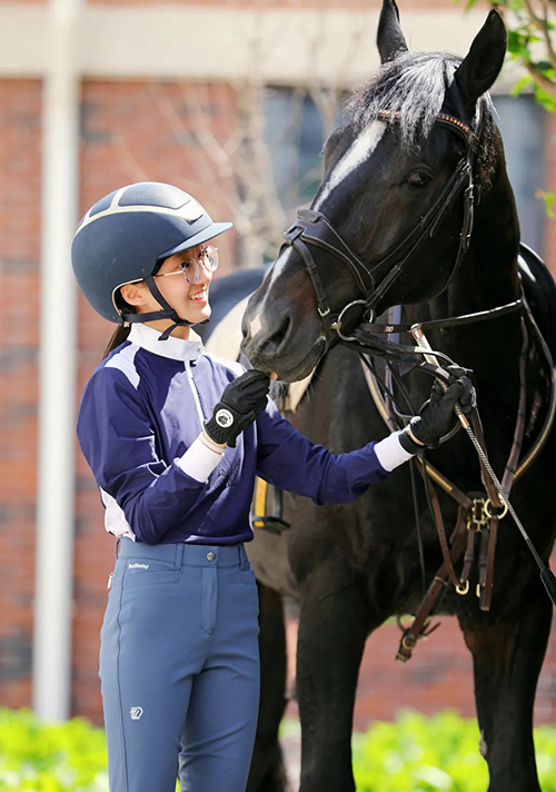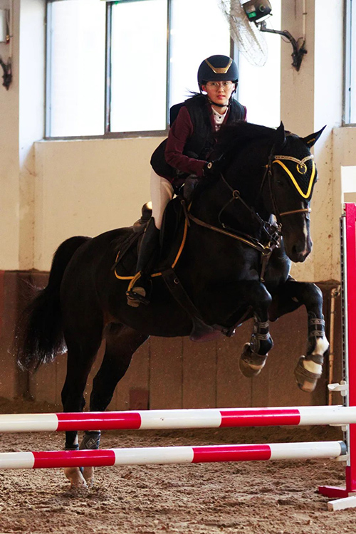 張雨馨:我學會了平衡馬術與學習 騎手張雨馨 在北京市海淀外國語實驗學校的京北校區(qū),我們見到了張雨馨的媽媽。 “我每周都會給馬準備胡蘿卜,挑選、清洗、切好,然后提過來,讓孩子喂給馬兒吃。照顧馬的事情不容疏忽,馬兒容易生病、受傷,只有我們將所有事安排妥當,才可能降低馬匹產生意外的概率?!?/div> 在與她的交流中,我們感受到她對女兒傾盡了所有的母愛,事無巨細,將女兒的生活、學習和馬術訓練照顧得井井有條。身邊有溫柔、細致、做事穩(wěn)妥的媽媽作榜樣,在潛移默化的影響下,雨馨也成長為一名自信大方、思維成熟而縝密的小騎手。 2023年天津市“騎聚津門·馳躍九州”公開賽,張雨馨與馬匹“墨雨蛟龍” 雨馨小時候,曾在加拿大溫哥華見到過一匹讓她一見鐘情的馬,從此她的心中就種下了學習馬術的種子。 2022 年北京市海淀外國語實驗學校開設中英文馬術藤飛班,旨在培養(yǎng)學生的學習能力、思維表達、小眾運動特長以及同理心、公益心,讓學生具備國際頂尖大學所需的全方位素質,雨馨成為了這個班集體的一員。 在來到中英文馬術藤飛班后,在自身的努力和家人的支持下,她在初一時,便擁有了一匹自己的黑駿馬,“呆龍”。剛見到這匹馬時,雨馨并沒有特別喜歡它,但在接觸一段時間后,就發(fā)現(xiàn)它是一匹能力很強、很愿意幫助騎手的馬,自那以后,雨馨就漸漸愛上了它。 “我現(xiàn)在很喜歡跟它互動,經常給它喂零食,也會給它洗澡和打理?!?/div> 學校除了室內外馬術訓練場外,還有馬房,飼養(yǎng)了 50 多匹教學馬。除了自己的馬,雨馨還會騎乘學校的教學馬,在這些馬里面,她最喜歡一匹退役下來做場地障礙的純血馬。 雨馨每天的課程安排中會有兩節(jié)馬術課,其中一節(jié)是馬術騎乘課,同時搭配馬術英語、馬術理論、體能課或者馬房課中任意一節(jié)。由于每天最多只能安排8節(jié)課程,因此馬術課所占用的兩節(jié)文化課時間只能在自習課或者晚自習的時間補回來。 “雖然馬術訓練占用了部分學習時間,但我覺得這對我的文化課學習并沒有影響,反而讓我學會了如何更有效率地學習和完成作業(yè)?!?nbsp; 在雨馨的班級里,同學之間似乎達成了某種默契?!拔覀兌贾缹W習馬術是搶時間,因此都非常自覺去提高速度,比誰換裝備更快?!氨?、學、趕、幫、超”也是班里同學們的日常學習狀態(tài),在完成校內多達14門中英文課程的同時,同學們堅持刻苦訓練馬術,很多時候早上7點就開始訓練,為了各自的馬術目標一刻也不松懈。” 為了有更多時間進行訓練,學生們會利用碎片時間、有效率地將周末作業(yè)提前寫完,然后在周日早早來到學校,再約一節(jié)馬術課“吃小灶”,這樣的正向“內卷”已經在孩子們之間悄然興起。 從零基礎開始,經過一年半時間的馬術訓練,雨馨開始越來越多地參加馬術賽事。“其實每次上比賽,我都感覺很緊張,怕自己控不住馬,不能按照教練指導的方案和策略完成路線?!庇贶罢f到。 在奪得河北省第十六屆運動會馬術場地障礙項目最高級別冠軍之前,雨馨還參加了河北省馬術場地障礙錦標賽,在那場比賽中,雨馨策騎“呆龍”以零罰分跳完了全部障礙,但因在比賽結束時,“呆龍”反跳了一道障礙,原本第四的成績被取消了。賽后,雨馨有些低落消沉,甚至不打算再參加接下來的省運會了,但在教練的鼓勵下,她又騎乘學校的馬“颯露銀雀”參加了天津兆天馬術俱樂部“騎聚津門·馳躍九州”公開賽,在那場比賽中她重建了自信,再次踏上了比賽的征程,并成功在河北省運會上與馬匹“颯露銀雀”一起奪得了冠軍,榮獲了國家一級運動員稱號。 海淀外國語學校京北校區(qū)馬房 “每次比賽前我都會找教練,詢問各種在賽場上我可能遇到的問題,教練每次都會幫我分析,幫我找到方法克服。一起走路線、算步數(shù),一起設計小回轉的角度,如何用腿的輔助、規(guī)劃好路線等。感謝教練一直支持我,帶我去各地比賽,相信我的能力。即使在比賽前壓力再大,著急到想哭,但上場之后,我會盡力讓自己什么都不想,拿出全力去完成教練與我一起在賽前制定好的騎乘策略。” 與姐姐,在教練和老師帶領下成長 張雨馨還有一個雙胞胎姐姐,張可馨。她與雨馨同班,此次姐姐也參加了河北省運動會馬術場地障礙項目,雖然沒有拿到國家一級運動員稱號,但也拿到了很優(yōu)秀的成績?!拔遗c姐姐一起訓練,共同成長。這一年半,我也看到了姐姐的蛻變,從一開始只是在一遍遍僵化地訓練,到現(xiàn)在開始分析錯誤原因,尋求突破口,姐姐變得越來越靈活,越來越通透。學習馬術這一年半時間里,我們都成長了很多。” 在這個過程中,兩姐妹相互鼓勵,面對困難也從不氣餒。“我們從來都是摔下馬后,接著上馬繼續(xù)練,這對我們來講,沒什么大不了的?!笨绍爸v到。 姐姐張可馨(左)妹妹張雨馨(右) 兩姐妹能夠實現(xiàn)在一年半內從零基礎登上省運會的賽場,王鵬教練功不可沒。王鵬教練平常是一個溫和、幽默的人,喜歡用趣味的教學方式來幫助學生提升;但有時,王鵬教練也很嚴苛,當學生們倦怠或者退縮時,他會用嚴厲的方式來教育他們?!敖虒W要因人而異、因馬而異,對每個學生都要有不同且適合他們的訓練方式,一生一案,因材施教?!?/div> 王鵬教練會給學生安排訓練的月計劃、周計劃。因為是小班上課,教練還會組織小型貼