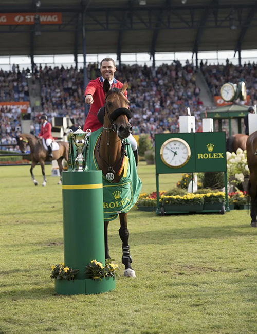 勞力士代言人、美國騎手肯特·法靈頓佩戴格林尼治型 II ?Rolex/Ashley Neuhof 在六月底開啟的2023年亞琛世界馬術(shù)節(jié)來臨之前,勞力士代言人、美國騎手肯特·法靈頓(Kent Farrington)在線上虛擬勞力士圓桌會議上與記者們共同慶祝勞力士場地障礙賽大滿貫十年慶典的推出。 當與肯特·法靈頓對話時,《馬術(shù)》雜志記者感受到了這位騎手對馬術(shù)運動恒久的熱愛。謙遜、耐心、孜孜不倦,這是肯特·法靈頓得以成為眾多場地障礙騎手偶像的原因之一。 Q:你在2019年搭檔“Gazelle”贏得了亞琛世界馬術(shù)節(jié)勞力士大獎賽冠軍,這場勝利對你來說意味著什么? 肯特·法靈頓:2019年搭檔“Gazelle”在亞琛世界馬術(shù)節(jié)勞力士大獎賽的勝利對我來說非常特別,像是一場成功的“復(fù)仇”。我曾經(jīng)在這里取得過非常好的成績,包括一個亞軍,這也是我腿嚴重骨折受傷,暫別賽場一段時間后的一次勝利。從某種意義上說,這場勝利意味著我重新回到馬術(shù)運動的最高水平,也代表著我已經(jīng)完全康復(fù),我把它視為我職業(yè)生涯的重要節(jié)點。 勞力士代言人、美國騎手肯特·法靈頓搭檔“Gazelle” 奪得2019年亞琛世界馬術(shù)節(jié)勞力士大獎賽冠軍 ?Rolex/Kit Houghton Q:勞力士場地障礙賽大滿貫10周年慶典將于下個月在亞琛世界馬術(shù)節(jié)正式啟動,勞力士場地障礙賽大滿貫在過去10年是如何影響這項運動的? 肯特·法靈頓:我相信勞力士場地障礙賽大滿貫提升了這項運動的聲譽。騎手們圍繞著勞力士場地障礙賽大滿貫去做全年的賽事規(guī)劃,大家都非常重視這項賽事。勞力士場地障礙賽大滿貫不僅是世界上獎金最高的馬術(shù)賽事,同時還有著極高的地位,我相信所有騎手都會一致認為,勞力士場地障礙賽大滿貫賽事代表著這項運動的最高水平。 Q:作為一名運動員,成功路上天時地利人和非常重要。你如何幫助馬匹在恰當?shù)臅r間點達到運動狀態(tài)的巔峰?如果馬匹狀態(tài)不佳,你如何應(yīng)對? 肯特·法靈頓:在高級別的競技中,騎手和運動馬在賽時達到運動狀態(tài)的巔峰是至關(guān)重要的。任何騎手或馬匹,都不可能一年365天處于巔峰運動狀態(tài)。 首先要確定哪個比賽對于自己是最重要的,之后為剩下的事情排一個先后順序。如果你什么都想要,最終什么也得不到。我認為這也是為什么勞力士場地障礙賽大滿貫對于場地障礙這個項目這么重要,它給了騎手一個努力的目標,所有騎手為同一個賽事付出很多努力,會帶動整個賽事的水準。 勞力士代言人、美國騎手肯特·法靈頓策騎“Gazelle” 贏得 2017 年日內(nèi)瓦國際馬術(shù)節(jié)勞力士大獎賽冠軍 ?Rolex/Ashley Neuhof 再回到馬匹狀態(tài)這個話題上,我認為像人一樣,每匹馬的情況都不一樣。今年我騎乘的馬并沒有擁有太多高級別的比賽經(jīng)驗,所以我?guī)椭_到運動巔峰的備賽方法是帶他去一些大比賽,確保他在抵達亞琛世界馬術(shù)節(jié)時,對于那里的比賽環(huán)境能夠適應(yīng)并保持放松。 幾年前,我搭檔更具備經(jīng)驗的馬時,我的備賽方法會完全不同,我會讓他們多休息,同時留意馬匹的體能,確保馬匹在抵達賽場時,頭腦和身體都是充滿活力的,而不覺得很無聊。 勞力士代言人、美國騎手肯特·法靈頓搭檔“Gazelle” 奪得2019年亞琛世界馬術(shù)節(jié)勞力士大獎賽冠軍 ?Rolex/Kit Houghton Q:你是如何培養(yǎng)下一代大獎賽馬匹的? 肯特·法靈頓:培養(yǎng)下一代大獎賽馬匹是一個艱巨的任務(wù),我會以一種自信和積極的心態(tài)面對所有的調(diào)教工作,相信我挑選的馬匹以及我的訓練方法。同樣,對于那些確實沒有天賦的馬,也要坦然接受。腳踏實地的調(diào)教,加上自信和耐心的心態(tài),會帶來最好的結(jié)果。 Q:你已經(jīng)取得了這么多成就,你如何面對你的成就,并不斷進步成為更好的騎手? 肯特·法靈頓:馬和馬術(shù)運動的特殊性,讓我能夠保持謙遜,因為和馬相處時變量很大,有時站在頂峰,有時又跌落谷底,但這也正是馬術(shù)運動的美妙之處。每匹馬都是一個獨立的個體,而與馬的緊密關(guān)系,并不總是一成不變的,我需要學會去適應(yīng)不同的馬匹,這也總是能增加我對這項運動的新鮮感和興奮感,了解他們的不同個性,發(fā)掘馬匹最大潛能,這是我認為最有收獲的事情,也是我不斷前進的動力。 勞力士代言人、美國騎手肯特·法靈頓策騎“Gazelle” 獲得2021年云杉草地大師賽勞力士呈現(xiàn)CP國際大獎賽亞軍 ?Rolex/Ashley Neuhof Q:你是什么時候開始愛上場地障礙這項運動的? 肯特·法靈頓:我一直很喜歡動物,我對馬術(shù)的熱愛最初也是源于對于馬的喜愛。我15~16歲左右開始參加pony賽事。對于馬的熱愛,才慢慢發(fā)展為對于馬術(shù)運動的熱愛,也正是那時候,我認為我以后一定會成為一個速度賽馬騎師,后來我才慢慢開始接觸場地障礙賽,并往這個方向發(fā)展。但一切都源于我對于馬、對于動物的喜愛。 轉(zhuǎn)錄/rEvolution 編譯/李晏萍?圖/勞力士 |