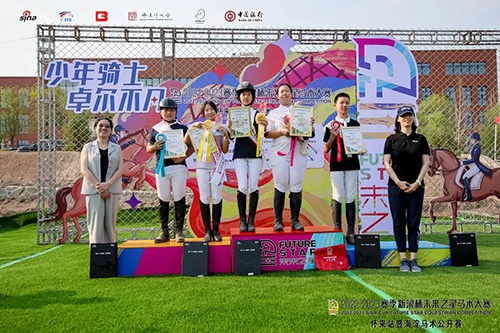 2022-2023賽季新浪杯未來之星馬術(shù)大賽步履不停,帶著青島與南京比賽的記憶,來到河北懷來,與來自省內(nèi)外的350多對(duì)人馬組合相約北京市海淀外國語實(shí)驗(yàn)學(xué)校京北校區(qū),在6月17、18日相聚,追尋不凡夢(mèng)想。 本次賽事舉辦期間正值父親節(jié),現(xiàn)場(chǎng)有許多父親陪伴孩子來到賽場(chǎng)。炎炎烈日下,他們總是對(duì)小騎手報(bào)以熱忱的激勵(lì),坦然面對(duì)成敗,展現(xiàn)了父愛如山的偉大。再加上本次承辦單位北京市海淀外國語實(shí)驗(yàn)學(xué)校京北校區(qū)的校園氛圍,構(gòu)造出一幅溫馨的畫面。 2022-2023賽季新浪杯未來之星馬術(shù)大賽懷來站暨海淀馬術(shù)公開賽,是由北京市馬術(shù)運(yùn)動(dòng)協(xié)會(huì)、新浪體育和法國馬術(shù)協(xié)會(huì)聯(lián)合主辦,北京市海淀外國語實(shí)驗(yàn)學(xué)校京北校區(qū)承辦,北京民辦中小學(xué)文化體育盟校、北京市海淀區(qū)體育局重競(jìng)技體校、海淀外國語教育集團(tuán)協(xié)辦,北京矩陣未來賽事管理有限公司運(yùn)營的青少年馬術(shù)賽事。 本次懷來站共設(shè)立場(chǎng)地障礙9個(gè)級(jí)別的比賽,并分別設(shè)立獎(jiǎng)金,級(jí)別覆蓋范圍廣,參賽人員眾多。對(duì)于騎手和觀眾們來說不僅可以感受懷來豐富的人文精神和文化底蘊(yùn),還能領(lǐng)略北京市海淀外國語實(shí)驗(yàn)學(xué)校京北校區(qū)的獨(dú)特之美。 0.6M 級(jí)別個(gè)人賽/團(tuán)體賽戰(zhàn)況 本次賽事的開賽項(xiàng)目選擇了兼具個(gè)人挑戰(zhàn)與團(tuán)隊(duì)榮耀的0.6M級(jí)別記分賽,吸引場(chǎng)內(nèi)觀眾的全部目光,也助推騎手們逐漸代入比賽氛圍,全力以赴,所向披靡。 在個(gè)人賽中,來自維度馬房的兩位小騎手奪得冠亞軍,分別為郭梓萌策騎馬匹風(fēng)年,劉梓琪策騎馬匹Lets Go。季軍則由來自天津兆天馬術(shù)的騎手陳美霖策騎馬匹大D獲得。 海淀外國語教育集團(tuán)執(zhí)行總裁、小學(xué)校長黃瑞華 女士與國際知名馬具品牌ARIAT中國區(qū)代表王博女士為獲獎(jiǎng)騎手頒獎(jiǎng) 在團(tuán)體賽中,在團(tuán)體總分同為195分的情況下,漢武十方以行進(jìn)時(shí)間155秒46的成績(jī)奪得團(tuán)體排名第一,海淀外國語一隊(duì)以行進(jìn)時(shí)間156秒38位居第二。第三名與第四名團(tuán)體總分同為186分,天津兆天馬術(shù)行進(jìn)時(shí)間158秒98獲得第三,海淀外國語四隊(duì)166秒62獲得第四。 海淀外國語教育集團(tuán)執(zhí)行總裁、小學(xué)校長黃瑞華女士與國際知名馬具品牌ARIAT中國區(qū)代表王博女士為獲獎(jiǎng)騎手頒獎(jiǎng) 0.8M 級(jí)別戰(zhàn)況 0.8M 一輪爭(zhēng)時(shí)賽共有37對(duì)人馬組合順利完賽。其中來自海外騎際馬術(shù)的小騎手趙若伊分別策騎馬匹楓丹白露與墨染青伊用時(shí)51秒52及54秒73獲得了冠季軍,來自月河灣的李嘉良策騎馬匹克拉行進(jìn)時(shí)間53秒48獲得亞軍。 海淀體校校長李海先生與八尺龍馬具銷售經(jīng)理汪濤先生為獲獎(jiǎng)騎手頒獎(jiǎng) 地桿賽戰(zhàn)況 地桿級(jí)別貼時(shí)賽作為本次賽事的基礎(chǔ)級(jí)別,共有48對(duì)人馬組合順利完賽,創(chuàng)造本場(chǎng)比賽完賽人馬組合數(shù)量之最。海外騎際馬術(shù)的小騎手們包攬了本項(xiàng)目的前三名。小騎手張靜雯策騎馬匹日月星辰以貼時(shí)差0.05奪得冠軍,小騎手李姝儀策騎馬匹玲瓏小灰與小騎手李營策騎馬匹日月星辰以相同貼時(shí)差0.40獲得并列第二名。 海淀外國語藤飛學(xué)校中學(xué)校長王影女士與北京市馬術(shù)運(yùn)動(dòng)協(xié)會(huì)教育中心執(zhí)行主任林子曄女士為獲獎(jiǎng)騎手頒獎(jiǎng) 公開組1.1M 級(jí)別戰(zhàn)況 1.10M 級(jí)別記分賽是第一天賽程的最高級(jí)別同時(shí)也是收尾項(xiàng)目,共有25對(duì)人馬組合獲得成績(jī)。來自廣東方胤馬術(shù)的穆爾阿地力·阿布杜熱依木策騎馬匹鈦合金獲得冠軍,海外騎際馬術(shù)的王鵬策騎馬匹墨韻長歌獲得亞軍,天津兆天馬術(shù)的代克兢策騎馬匹天蝎座獲得季軍。 北京市馬術(shù)運(yùn)動(dòng)協(xié)會(huì)教育中心執(zhí)行主任林子曄女士與北京市體育局副局長楊海濱先生為獲獎(jiǎng)騎手頒獎(jiǎng) 第一天的比賽在緊張刺激的比拼中落下帷幕,大家都無比期待第二天的到來。 公開組0.9M 級(jí)別團(tuán)體賽戰(zhàn)況 第二天的比賽同樣選擇了團(tuán)體賽作為開賽項(xiàng)目,一下點(diǎn)燃了現(xiàn)場(chǎng)的競(jìng)賽氛圍,延續(xù)了第一天的比賽熱情。海淀外國語四隊(duì)奪得團(tuán)體第一名,玉馬房奪得團(tuán)體第二名,海淀外國語二隊(duì)奪得團(tuán)體第三名。 海淀外國語實(shí)驗(yàn)學(xué)校京北校區(qū)中學(xué)校長張紅女士為獲獎(jiǎng)騎手頒獎(jiǎng) 交叉桿及0.5M 級(jí)別戰(zhàn)況 交叉桿及0.5M 級(jí)別貼時(shí)賽中,來自海外騎際馬術(shù)的騎手王妙可分別策騎馬匹青云直上與黑風(fēng)以貼時(shí)差0.03和0.83奪得冠亞軍,衡水名揚(yáng)馬術(shù)的王雅舒策騎馬匹小黑將軍獲得第三名。 海淀外國語教育集團(tuán)執(zhí)行總裁中學(xué)校長朱燕女士與北京市馬術(shù)運(yùn)動(dòng)協(xié)會(huì)常務(wù)副會(huì)長陳徹先生為獲獎(jiǎng)騎手頒獎(jiǎng) 公開組1.0M 級(jí)別戰(zhàn)況 公開