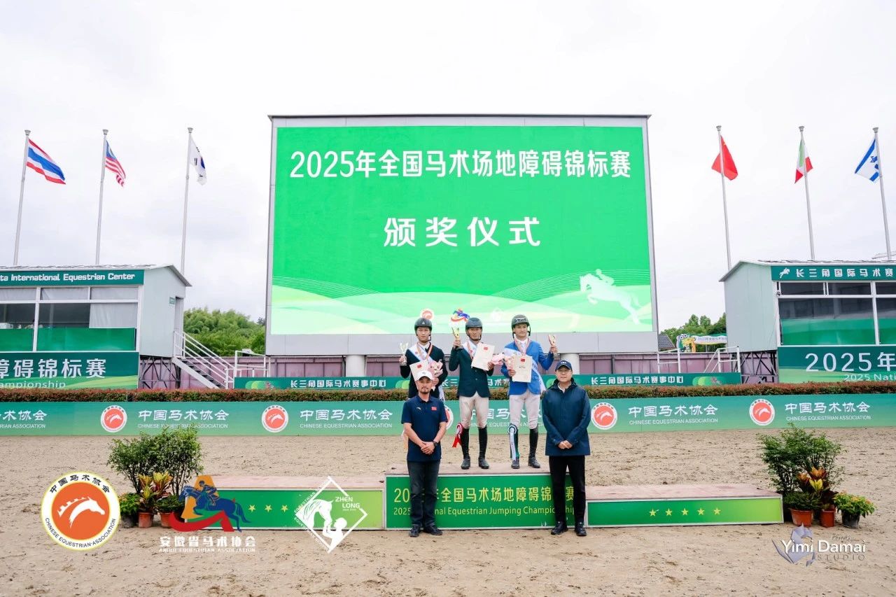 戰(zhàn)報速覽 2025年全國馬術(shù)場地障礙錦標(biāo)賽 —————————————————————— 6月8日個人賽 冠軍:山東隊騎手張勇搭檔“尼澤爾“ 亞軍:廣西隊騎手洪志華搭檔“如雙” 季軍:廣西隊騎手木拉得力搭檔“輕七尺” 6月6日團體賽 冠軍:上海隊 張濱搭檔“CARTOSI MELLONI”、徐墨菲搭檔“非非”、張陽搭檔“Ruby”、鄭文杰搭檔“咚咚” 亞軍:香港隊 梁巧羚搭檔“潘明卡”、沈憶淇搭檔“嵐光”、賴楨敏搭檔“恰比” 季軍:廣西隊 哈扎克拜搭檔“Bella”、洪志華搭檔“如雙”、木拉得力搭檔“輕七尺”、達(dá)布西力特搭檔“卡斯特羅” —————————————————————— 2025年6月8日,2025年全國馬術(shù)場地障礙錦標(biāo)賽個人賽落幕。山東隊騎手張勇搭檔“尼澤爾”以兩輪零罰分贏得個人冠軍,廣西隊騎手洪志華搭檔“如雙”以兩輪2罰分獲得亞軍,同為廣西隊的騎手木拉得力搭檔“輕七尺”以兩輪8罰分獲得季軍。 后排從左至右:廣西隊騎手洪志華、山東隊騎手張勇、廣西隊騎手木拉得力 頒獎嘉賓:廣德長三角國際馬術(shù)賽事中心負(fù)責(zé)人陳陣(左),中國馬術(shù)協(xié)會副秘書長兼競賽部部長孫立生先生(右) 2025年全國馬術(shù)場地障礙錦標(biāo)賽由中國馬術(shù)協(xié)會主辦,在位于安徽省廣德市的長三角國際馬術(shù)賽事中心舉辦。 長三角國際馬術(shù)賽事中心在2025年1月1日,獲得了國際馬聯(lián)場地專家、奧林匹克委員會場地專家奧利弗·霍伯格(Oliver Hoberg)的權(quán)威認(rèn)證,成為國內(nèi)首家獲得認(rèn)證的國際高標(biāo)準(zhǔn)馬術(shù)賽場。 本次賽事的路線設(shè)計師為孫志堅,他曾擔(dān)任國際馬聯(lián)CSI**中國場地障礙年度總決賽等多場2星級賽事的路線設(shè)計師。對于這次賽事,他表示,長三角國際馬術(shù)賽事中心的場地比較大,且近期有連續(xù)的高強度賽事,因此路線設(shè)計主要遵循讓馬保持良好節(jié)奏與動力的原則,同時也希望在視覺上展現(xiàn)馬術(shù)運動的魅力。 “我們在設(shè)計路線的時候會預(yù)判場上的結(jié)果,然后在比賽過程中觀察騎手與馬匹的表現(xiàn)是否符合我們的預(yù)設(shè),賽后再進行整體的總結(jié)復(fù)盤,不斷改善。這次的賽事基本與我預(yù)想的一致,騎手與馬匹的表現(xiàn)都很出色。” 路線設(shè)計師孫志堅在錦標(biāo)賽現(xiàn)場??何亦紅 2025年全國馬術(shù)場地障礙錦標(biāo)賽團體賽(個人資格賽)于6月6日進行,由張濱、徐墨菲、張陽、鄭文杰組成的上海隊贏得團體冠軍。由梁巧羚、沈憶淇、賴楨敏組成的香港隊獲得團體亞軍。由哈扎克拜、洪志華、木拉得力、達(dá)布西力特組成的廣西隊獲得團體季軍。 后排從左至右:香港隊(3人)、上海隊(4人)、廣西隊(4人) 21對人馬進入個人賽第一輪,廣西隊騎手木拉得力搭檔“輕七尺”、山東隊騎手張勇搭檔“尼澤爾”和廣西隊騎手洪志華搭檔“如雙”以個人賽第一輪零罰分領(lǐng)銜14對人馬組合進入個人賽第二輪。 團體賽(個人資格賽)中山東隊騎手張勇搭檔“尼澤爾” 第二輪比賽中,廣西隊騎手洪志華搭檔“如雙”在場上表現(xiàn)平穩(wěn),僅獲得時間罰分2分。隨后出場的山東隊騎手張勇搭檔“尼澤爾”頂住壓力,實現(xiàn)了零罰分。最后一位出場的廣西隊騎手木拉得力搭檔“輕七尺”奮力爭奪,行進時間達(dá)到了全場最短的69.77,但獲得了8分障礙罰分。最終,張勇以兩輪零罰分成功衛(wèi)冕。 馬術(shù)在線記者在個人賽后對山東隊騎手張勇進行現(xiàn)場采訪 |