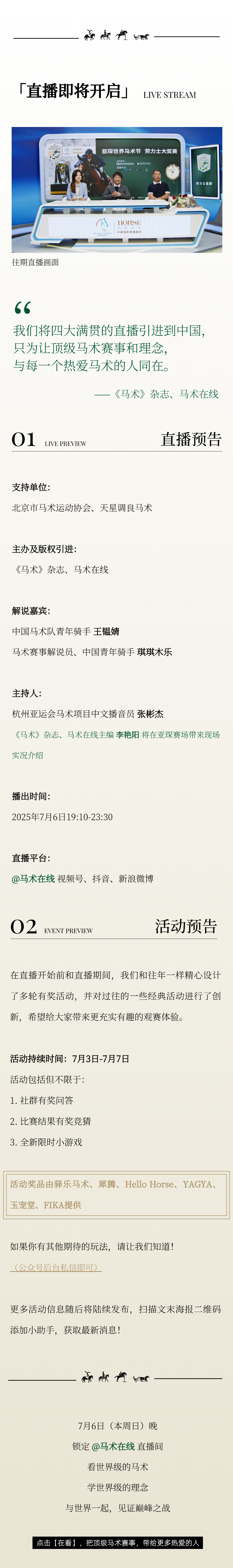 倒計時7日,與四萬現(xiàn)場觀眾共同見證馬術(shù)界傳奇之戰(zhàn)