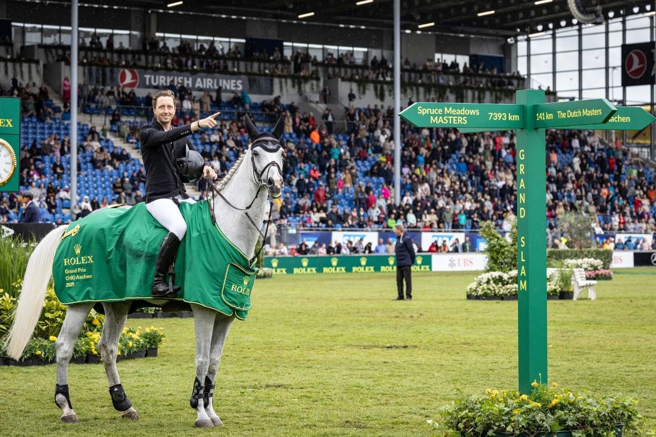 ?Rolex Grand Slam - Ashley Neuhof 亞琛,這座被譽為“世界馬術之都”的城市,每年夏天都吸引著全世界最頂級的人馬組合前來一決高下。2025年的勞力士大獎賽,馬丁·福斯(Martin Fuchs)終于在這片草場上,留下了屬于自己的榮耀時刻。 —————————————— 對于每一位場地障礙騎手來說,贏下亞琛,就等于在職業(yè)生涯中畫上濃墨重彩的一筆。這一次,馬丁·福斯與他的老搭檔“Leone Jei”,在三輪比賽中表現無可挑剔,最終加冕冠軍,成為歷史上首位贏下5場勞力士大獎賽的騎手。至今勞力士大滿貫唯一獲得者斯科特·布拉什(Scott Brash)也僅僅贏得過4場勞力士大獎賽而已。 01 草地上的“雨中曲” 在近四屆亞琛世界馬術節(jié)勞力士大獎賽中,贏得冠軍都是德國騎手,而今年參賽選手中,超過四分之一都來自東道主德國,因此觀眾們都很期待德國選手能再次奪冠。 今年第一輪的路線設計,整體上對于小步伐的馬匹更有利。值得一提的是,在集中注意力跳過第四道abc組合障礙之后,很快就會迎來兩道利物浦。因為障礙之間的距離短,加上當天降雨,雨水不斷影響著水面的狀態(tài),很多馬匹在這兩道障礙前顯得尤為緊張。 盡管所有參賽人馬組合在出征前,都會針對利物浦進行專門訓練,但現場與練習場永遠有差距。尤其是在亞琛這樣的大賽環(huán)境里,任何微小的不安都可能被無限放大。 在雨中走路線的騎手們 ?Diana Wahl 衛(wèi)冕冠軍安德烈·蒂姆率先登場,但不幸打落一桿,獲得4罰分。緊隨其后的前三項賽騎手桑德拉·奧法特(Sandra Auffar)謹慎登場,順利完賽,但因用時過長而被扣掉一分。 而作為第七位出場的馬丁·福斯,搭檔“Leone Jei”以流暢、冷靜、零罰分的表現,完成了這輪比賽,獲得全場首個零罰分。對于馬的信任和篤定,貫穿于他的每一次助跑與起跳。 緊隨其后出場的,是剛剛從傷病中恢復的史蒂夫·戈爾達(Steve Guerdat),以零罰分、90.25秒,暫列第二,現場為之沸騰。而主場作戰(zhàn)的德國騎手格里特·尼伯格(Gerrit Nieberg)搭檔他獨特的花馬“Ping Pong”,也順利拿下零罰分。躍過最后一道障礙落地后,場邊爆發(fā)出驚嘆與吶喊,那是屬于騎手與馬的最高禮贊。 在第一輪中,如果騎手打了一桿,他們通常會選擇努力爭取“4罰分中的最短時間”,因為排名前18才能進入第二輪,在相同罰分下,時間將成為決定性因素。這也是頂級賽事中常見的戰(zhàn)略性選擇。 02 11對人馬組合獲得兩輪零罰分,女性騎手有4位 第二輪的路線整體更適合步伐大的馬匹。勞力士大獎賽的傳統,依舊被保留——在最后一道或倒數第二道設置帶黃板的勞力士障礙,這不僅是障礙設計,更像一種象征:只有真正的王者,才能跨過這道“榮譽之門”。 ?jasminmetzner_fotografie 不知道是不是因為下雨地面濕滑,使得路線設計師手下留情,降低了路線難度。絕大多數在第一輪零罰分的人馬組合,在第二輪也穩(wěn)住了節(jié)奏,取得零罰分。不過,備受矚目的世界排名第一騎手肯特·法靈頓(Kent Farrington)卻在關鍵時刻出現遺憾失誤,打落一桿,未能進入附加賽。 值得一提的是,很多年輕騎手初登亞琛賽場,反而會超常發(fā)揮,取得好成績。因為他們的注意力會高度集中,不容自己出現絲毫分神。 此時,比賽氛圍愈發(fā)緊張。每一次鈴響,都牽動著全場觀眾的呼吸。 03 最后關頭被趕超的可能性也許不大,但一定不是0 今年進入 jump-off 的11對人馬組合中,有4位女性,展現了女性騎手在世界頂級場地障礙賽場上的堅韌與力量。 在馬丁·福斯與“Leone Jei”出場時,現場安靜得只剩下雨點和馬蹄落在草場上的聲音。他們完美完成全程,以三輪零罰分的領先成績,暫居冠軍。 隨后出場的騎手,都企圖趕超,但都紛紛在罰分與速度之間顧此失彼。 轉眼間來到最后一對出場的人馬組合,美國騎手勞拉·克勞特(Laura Kraut),搭檔“Baloutinue”,她是最后也是最有可能阻止馬丁·福斯奪冠的騎手。 勞拉·克勞特,搭檔“Baloutinue”在亞琛賽場上疾馳?pierredeconinckmedia 只見鈴響后她便策馬飛馳。她的路線緊湊、速度極快,馬蹄落地的聲音十分干脆有力,全場觀眾都屏住呼吸,最終僅以落后2.12秒之差獲得亞軍,獲得30萬歐元的獎金。 而今年,勞拉·克勞特已經60歲。她用實力證明,在馬術的賽場上,年齡從來不是限制,唯有熱愛與堅持才是底色。 看到勞拉·克勞特完賽后,一直在馬上緊張關注賽事的馬丁·福斯才終于確定自己穩(wěn)拿冠軍,如釋重負地松了口氣,激動地與家人相擁。 賽后,馬丁·福斯難掩激動:“亞琛是每一位騎手的夢想,我從小就渴望在這里贏下大獎賽。今天,這個夢想終于實現了。”他還表示,那道金色組合障礙對他來說是最難的部分,不過他一直堅信,“Leone Jei”是一匹能贏下這場比賽的馬,心懷這樣的信念與信任,一人一馬最終取得了勝利。 此前,他的四場勞力士大獎賽勝利分別來自加拿大卡爾加里(3場)與日內瓦(1場)。如今,亞琛的獎杯,讓他的榮耀更加完整。這也是一次突破,讓他離勞力士場地障礙大滿貫的榮譽更近了一步。 ?Rolex 這就是亞琛世界馬術節(jié)勞力士大獎賽,一場屬于騎手與馬匹、屬于榮耀與夢想的比賽。 有人圓夢,有人遺憾,但無一例外,每一對人馬組合,都在這片草場上,留下了自己的印記。 恭喜馬丁·福斯,終于在亞琛登頂,也感謝所有騎手與馬,為我們帶來這樣一個充滿力量與美的夜晚。 勞力士與馬術 逾六十年來,勞力士