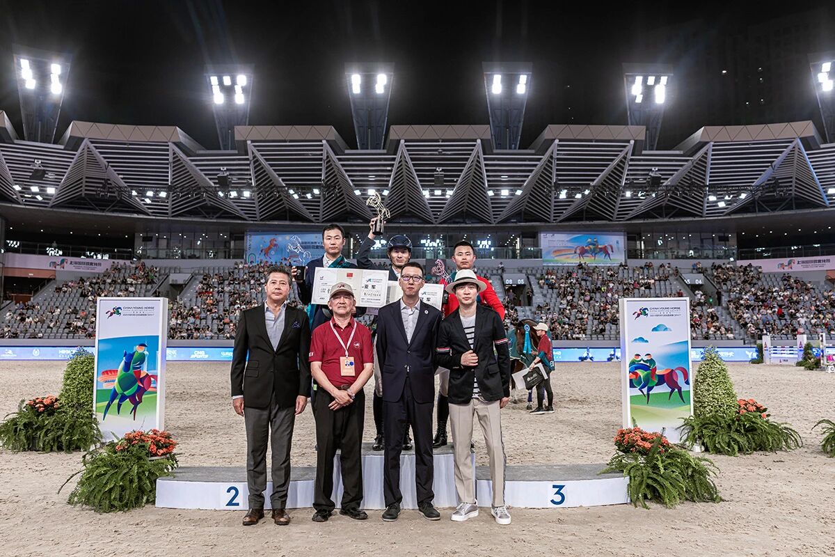 決賽開啟,難度提升 在10月6日下午的六歲馬決賽中,天色漸暗,賽場周圍的LED屏對于馬匹注意力的影響比上午大很多,這也為現(xiàn)場的馬與騎手帶來了更高的考驗。 調(diào)教師通常會關(guān)注年青馬的專注度、現(xiàn)場表現(xiàn)力、性格等,因此現(xiàn)場比賽經(jīng)驗不夠多的年青馬,如果能展現(xiàn)很好的天賦、穩(wěn)定的發(fā)揮和跳躍能力,即便是在有打桿的情況下,也會被視作有潛力的馬。 最后,張勇搭檔“青澀女孩”以零罰分、75.38秒的行進時間,獲得六歲馬決賽的冠軍。騎手滿都呼搭檔“養(yǎng)樂多”獲得亞軍,騎手高曉坤搭檔“阿克琉斯”獲得季軍。 賽后,張勇在接受馬術(shù)在線采訪時表示,非常高興這次能夠來上海參加中國年青馬場地障礙賽,往年的每一屆年青馬大賽我都會參加。久事的場地條件非常好,也很國際化,不過對于沒有太多參賽經(jīng)驗的年青馬來說,在較為封閉的場館里比賽會有些膽怯。 “因為我平時也做一些年青馬的調(diào)訓(xùn)工作,所以這次我?guī)Я?匹馬過來參賽,5、6、7歲的馬匹都有。對于年青馬來說,最重要的是關(guān)注它們的身心健康,不要一味地追求成績,而是通過多參加賽事來增加它們關(guān)于比賽的快樂經(jīng)歷,同時促進它們成長。” “年青馬是我們國內(nèi)彌補年青馬調(diào)教方面的一個很好的賽事,我希望中國年青馬場地障礙賽能夠持續(xù)辦下去,我也一定會每年都參加?!睆堄滦χ偨Y(jié)道。 七歲馬決賽的路線難度再次提升,例如,增加了一個雙橫木很小角度接ABC組合障礙。來自西班牙的騎手薩烏爾·普爾圖斯(Saul Portos)搭檔馬匹“N YANDRO”首先登場,全程將馬控制在柔和、完美的節(jié)奏中,馬匹自身也會在跳躍障礙時有意識收緊前腿與后腿,這種對于障礙的小心性是年青馬可貴的品質(zhì)之一。 擁有豐富年青馬調(diào)訓(xùn)經(jīng)驗的中國騎手劉同晏隨后搭檔“要塞中心”出場,也順利以零罰分完賽,與薩烏爾·普爾圖斯進入附加賽。最終,兩對人馬組合各獲得4分障礙罰分,薩烏爾·普爾圖斯搭檔“N YANDRO”以2.23秒的領(lǐng)先優(yōu)勢,奪得冠軍。劉同晏搭檔“要塞中心”取得亞軍,周小毛搭檔“星月”獲得季軍。 薩烏爾·普爾圖斯對馬術(shù)在線記者說:“這是我第一次在中國參加年青馬大賽,我來中國已經(jīng)六年了,在這期間我見證了中國馬術(shù)產(chǎn)業(yè)的發(fā)展。在歐洲,馬匹繁育是馬術(shù)產(chǎn)業(yè)里很重要的一環(huán),年青馬賽事也會有很多騎手帶著馬匹參加。如今,看到中國自主繁育的馬匹越來越多,年青馬場地障礙賽也成為亞洲首個國際馬聯(lián)認(rèn)證的年青馬賽事,這對于中國馬術(shù)未來的發(fā)展肯定是很好的,我也非常高興能夠參與到其中?!?/span> “今天我搭檔的七歲馬匹‘N YANDRO’是我的學(xué)生Angelina zimo Bian的馬,我和這匹馬配合有一年了,它在比賽中非常專注,總是盡它所能表現(xiàn)到最好,在今天比賽中的表現(xiàn)也非常好。我很希望在未來繼續(xù)參與年青馬賽事,這類賽事無論是對馬還是對人來說,都有極大的幫助?!?/span> 決賽頒獎儀式 最佳調(diào)教師:劉同晏 頒獎嘉賓:瑪尚馬具總經(jīng)理劉華華(左一);著名演員、歌手景崗山(右一)。 最佳馬工:盤雪潤 頒獎嘉賓:天駟龍駒賽事管理有限公司高級顧問、中國年青馬大賽賽事發(fā)起人欒樹(左一);瑪尚馬具總經(jīng)理劉華華(右一)。 六歲馬級別決賽頒獎:張勇搭檔“青澀女孩”奪得冠軍(后中),滿都呼搭檔“養(yǎng)樂多”榮獲亞軍(后左),高曉坤搭檔“阿克琉斯”獲得季軍(后右)。 頒獎嘉賓:中國電影表演藝術(shù)學(xué)會副會長、上海電影家協(xié)會副主席、上影演員劇團團長、國家一級演員佟瑞欣(左一);技術(shù)官員代表、賽事監(jiān)管長葉謀順(Mou soon Yap)(左二);上海久事國際馬術(shù)有限公司董事長洪磊(右二);著名歌手、音樂制作人、中國首位獲得國際歌唱比賽最高獎的流行歌手羅中旭(右一)。 七歲馬級別決賽頒獎:SAUL PORTOS 搭檔“N YANDRO”奪得冠軍(后中),劉同晏搭檔“要塞中心”榮獲亞軍(后左),周小毛搭檔“星月”獲得季軍(后右)。 頒獎嘉賓:中國馬術(shù)協(xié)會競技部部長賈大鵬(左一);技術(shù)官員代表、賽事裁判長沈曉玥(左二);上海久事國際馬術(shù)有限公司董事長洪磊(左三);著名演員、柏林電影節(jié)銀熊獎最佳女主角、中國電影金雞獎最佳女主角詠梅(右二);中國乒乓球運動員、奧運會冠軍、世界冠軍王濤(右一)。 CSIYH1*2025年中國年青馬場地障礙賽作為亞洲首個真正意義上的國際年青馬賽事,不僅為其他亞洲國家提供了重要范本,更向公眾彰顯了中國在馬術(shù)領(lǐng)域的長期承諾:中國既關(guān)注騎手培養(yǎng),也注重馬匹未來。 |