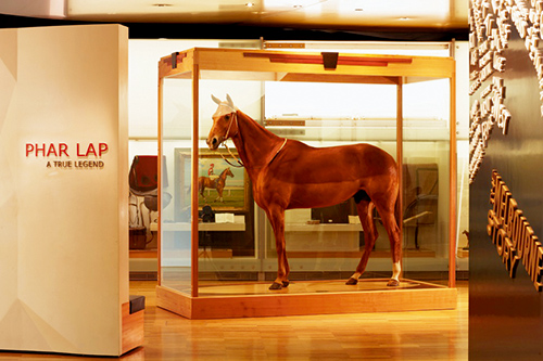 一匹馬到底能如何傳奇?可能大部分人想的不過(guò)就是得過(guò)多少次冠軍之類而已。如果說(shuō)他能傳奇到有以他命名的街道以及各類文化遺產(chǎn)呢?在悉尼、加州、奧克蘭、惠靈頓等地均有以“快如閃電”(Phar Lap)命名的街道;他是澳洲賽馬名人堂和新西蘭賽馬名人堂的五位創(chuàng)始入選者之一;他的心臟、標(biāo)本和骨骼遺體分別被澳洲國(guó)立博物館、新西蘭國(guó)立博物館以及墨爾本博物館所保留并展出…… “快如閃電”是一匹生于新西蘭訓(xùn)于澳洲的馬,其名字源于壯語(yǔ)和泰語(yǔ),意思是閃電。當(dāng)時(shí)一位叫 Aubrey Ping 的年輕醫(yī)學(xué)院學(xué)生經(jīng)常去看賽馬,也喜歡跟騎師和練馬師們聊天,而他來(lái)自中國(guó)的爸爸恰好會(huì)說(shuō)壯語(yǔ)。攀談間練馬師 Harry Telford 知道了這個(gè)壯語(yǔ)詞。這個(gè)詞原本的寫法應(yīng)該是“farlap”, 而 Harry 為 了 遵 循當(dāng)時(shí)墨爾本杯冠軍馬的名字規(guī)律,用“Ph”代替了“f”,湊成 7 個(gè)字母然后分成兩個(gè)詞,就成為了后來(lái)的“Phar Lap”。 “快如閃電” 1926 年出生于新西蘭南島提馬魯附近的 Seadown,同父系(Night Raid)的兄弟中也出了不少名馬,包括墨杯冠軍Nightmarch。 當(dāng) 初 澳 洲 練 馬 師Harry 在看拍賣目錄時(shí)也是押在了系譜上。在多番游說(shuō)之后,Harry終于找到感興趣的商人 David J. Davis。David 同意開價(jià)到 190 堅(jiān)尼,Harry 就讓在新西蘭的兄弟Hugh Telfold 幫忙,說(shuō) “只要有頭和四條腿就拍下吧”,最后僅以 160 堅(jiān)尼的低價(jià)拍下了當(dāng)時(shí)編號(hào)為 41 的“快如閃電”。 實(shí)際上無(wú)論是 David 還是 Harry,一直到“41 號(hào)”被運(yùn)到澳洲之前,都沒有親眼見過(guò)他,他們當(dāng)時(shí)還沉浸在以低價(jià)拍下的驚喜當(dāng)中。然而他們的初見只有驚沒有喜。Harry看到這匹大卻纖瘦、臉上有疣、步姿怪異的馬時(shí)就意識(shí)到了問題。果然,David 第一眼看到“41 號(hào)”時(shí)幾乎氣瘋,明確地說(shuō)不會(huì)再投資一分錢在這匹馬身上,更不會(huì)出錢訓(xùn)練。當(dāng)時(shí) Harry 手頭拮據(jù),也怕得罪僅有的幾個(gè)客戶,最后只好說(shuō):租用“快如閃電”三年作為訓(xùn)練、飼養(yǎng)等費(fèi)用,期間所有獎(jiǎng)金收入的三分之二將歸他所有。Harry 只能寄希望于“41 號(hào)”的體型和系譜優(yōu)勢(shì),加上長(zhǎng)達(dá) 12 個(gè)月的訓(xùn)練可以有點(diǎn)成績(jī)。然而 Harry 的期許并沒有實(shí)現(xiàn),“41 號(hào)”在注冊(cè)為“快如閃電”后出戰(zhàn)的首場(chǎng)比賽中,以最后一名沖線,在緊接著的三場(chǎng)比賽中也沒有取得任何名次。 就在 David 準(zhǔn)備放棄“快如閃電”,Harry 也承受不了經(jīng)濟(jì)壓力之際,“快如閃電”在兩歲馬賽季最后一場(chǎng)比賽中以半個(gè)馬位的優(yōu)勢(shì)一舉奪得了冠軍,這一定程度上給了他們一顆定心丸。雖然之后“快如閃電”在三歲賽季同樣開局不利,一開始就輸?shù)袅?8 月份的所有 4 場(chǎng)比賽,但在調(diào)整之后他拿下了湛士福錦標(biāo)賽的亞軍。這幾乎是所有一切的轉(zhuǎn)折點(diǎn)?!翱烊玳W電”在那之后一直狀態(tài)神勇,一連斬獲 4 場(chǎng)冠軍,而在之后的11 場(chǎng)比賽里拿下 9 冠 2 季的驕人成績(jī),僅僅沒有奪得墨爾本錦標(biāo)賽和墨爾本杯冠軍。擁有如此出色的表現(xiàn),“快如閃電”在整個(gè)賽馬圈都受到了重視。 在 1930-1931 賽季“快如閃電”參加的 16 場(chǎng)比賽中,共摘得 14個(gè)連勝冠軍,其中就包括了那個(gè)當(dāng)年 Harry 掛念著的墨爾本杯?!翱烊玳W電”在 1929-1930 賽季首次參加墨杯時(shí)就被列為了“熱門”,接下來(lái)的兩年更成為熱門中的熱門,是唯一連續(xù)三年被墨爾本杯列為“熱門”的賽馬。盡管首年參加墨杯時(shí)沒有拿下冠軍,“快如閃電”在其他比賽中的表現(xiàn)無(wú)比搶眼,在第二年參加墨杯前就刷出 7 連冠的記錄,大家都感覺“快如閃電”已經(jīng)風(fēng)頭正盛勢(shì)不可擋。在墨杯前三天、墨爾本錦標(biāo)賽當(dāng)天,就有人企圖槍殺他,最后以失敗告終。在 1930-1931 賽季墨杯上“快如閃電”熾手可熱,成為了墨杯史上賠率盤口最小、同時(shí)也是唯一在“大熱門”下勝出的賽馬。 在最后一個(gè)賽季中,“快如閃電”基本已經(jīng)獨(dú)步澳洲的比賽,贏下了所有 9 場(chǎng)比賽中的 8 場(chǎng),而輸?shù)舻奈ㄒ灰粓?chǎng),就是墨杯。如果規(guī)則和制度都因他而傾斜,地位可想而知,這時(shí)的“快如閃電”已然成為了“影響平衡”的存在。在這屆的墨杯上,“快如閃電”的讓賽記重已提高到了史無(wú)前例的 68 公斤。盡管他最終輸?shù)袅吮荣?,但所有人都清楚地知道誰(shuí)才是真正的王者。 在“快如閃電”所向披靡的同時(shí),遇到的卻是越來(lái)越大的阻力,無(wú)理的負(fù)重只是明面上的而已。因此David決定從1932年開始帶他轉(zhuǎn)戰(zhàn)美洲。這時(shí)的Harry已經(jīng)成為了“快如閃電”的聯(lián)合馬主,但他不同意也拒絕了一同到美國(guó)。代替Harry的則是“快如閃電”的另一位伯樂,跟他形影不離的 Tommy Woodcock。Tommy 是 第 一個(gè)發(fā)現(xiàn)“快如閃電”喜歡后來(lái)居上的人,而“快如閃電”也曾因 Tommy 被開而絕食。他們的海外