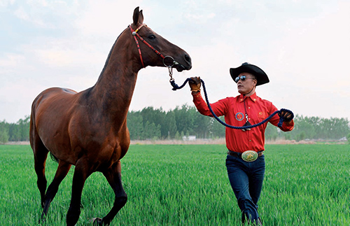 無論何人初次來到臨沂豐和馬術(shù)運(yùn)動(dòng)俱樂部,都會(huì)震驚于這里的面積之大。占地近 3000 畝的農(nóng)場觸目所及都是綠油油的農(nóng)田,它們呈塊狀整齊地排列著,綿延伸向遠(yuǎn)處;魚塘、采摘園錯(cuò)落有致,一群白鷺正在嬉鬧飛翔,把馬場裝點(diǎn)得更加生機(jī)勃發(fā)。汽車筆直向前開去,直到翠柳盡處,看到熟悉的練習(xí)場地,一切就此明晰,原來馬場就包裹在這大片綠色之中…… 初見楊維慶先生,他剛從公司趕過來,身著一套時(shí)尚的藍(lán)色西裝、黑皮鞋,風(fēng)風(fēng)火火地出現(xiàn)在豐和馬場會(huì)館門前。站定,開口便是沉穩(wěn)的“低音炮”,鼻上架著的那副飛行員鏡片反著藍(lán)光,有一身說不出的瀟灑和霸氣。 寒暄過后,這位山東漢子盡地主之誼,帶我們順著主樓、練習(xí)場、擁有 40 余匹各品種馬匹的馬房、馬匹泳道一一走過,介紹俱樂部完備的硬件設(shè)施。筆者本是對16000米國際賽道慕名而來,著急一探究竟,轉(zhuǎn)了一圈卻仍不見賽道蹤影,這時(shí)楊先生解釋道,標(biāo)準(zhǔn)賽道并不包含在農(nóng)場之中,而是位于三公里外面濱河位置?!叭绻褍蓚€(gè)區(qū)域加在一起,總建設(shè)面積接近 6000 畝地。” 在正對馬房的花園中站定,楊維慶目光堅(jiān)定,面帶豪情。他大膽規(guī)劃藍(lán)圖,把豐和馬術(shù)運(yùn)動(dòng)俱樂部的發(fā)展方向定為集健身娛樂、旅游觀光為一體的悠閑度假區(qū)。他看著此刻正欲突芽而出的梨樹,有些興奮地說,“現(xiàn)在我們這片梨園,春天過后你再來看,架滿葡萄藤”,同時(shí)用手比劃拱形門的結(jié)構(gòu),“在這照相挺好看的是吧!” 臨近12點(diǎn),我們被邀請與馬房工作人員共進(jìn)午餐。小院里臨時(shí)搭上幾張桌子,端上來簡單的農(nóng)家小炒、新鮮的家養(yǎng)雞蛋,配著每頓必不可少的小蔥蘸醬,沐浴著頭上暖洋洋的正午陽光,這個(gè)土生土長的“農(nóng)民的兒子”終于摘下時(shí)尚眼鏡,放松地享受一頓美餐。也唯有在馬場時(shí),他可以卸下管理公司的重任,回歸最簡單真實(shí)的一面。 “沒有無緣無故的愛” 自稱“楊”家將的楊維慶從小便與馬有著不解之緣。從岳飛策馬精忠報(bào)國,到楊家將士捍衛(wèi)疆土,在當(dāng)時(shí)有限的信息源之下,他專注并癡迷于所有關(guān)于馬的傳說和故事。幾十年過去了,楊維慶現(xiàn)在依然可以精確復(fù)述出評書中的書詞?!榜R王一來,嘶吼一聲,敵人的馬霎時(shí)間嚇得屁滾尿流,不戰(zhàn)而敗”,說到這句時(shí),他加重語氣,如劇中人般怒目而視,手掌滑向一邊,仿佛瞬間變身馬上將軍,威風(fēng)凜凜,指點(diǎn)江山。 這些故事給他的影響之深,以至于那時(shí)他“做夢都是騎馬”,因?yàn)樵隈R上持韁馳騁,就意味著英雄氣概??吹洁従蛹液⒆佑旭R騎,而自己家里沒有,楊維慶羨慕不已,想出一招“割草換馬”——替發(fā)小干農(nóng)活,換取騎馬的機(jī)會(huì)——這筆因馬而起的生意,一下讓腦海中渴望嘗試的空缺變得“名副其實(shí)”,也正式開啟了他與馬同行的旅程。 時(shí)光易逝,心中埋下的愛馬情結(jié)如種子般生根發(fā)芽,變得堅(jiān)定。2009 年,楊維慶擁有了人生中第一匹屬于自己的馬,當(dāng)時(shí)他只有個(gè)簡單的想法,買齊“黑白紅”三色馬,讓兩個(gè)哥哥也都有馬可騎。兄弟三人都愛馬,理念不謀而合,從此一發(fā)不可收拾,不僅不遺余力地支持俱樂部的建設(shè)和賽事的舉辦,業(yè)余時(shí)間還會(huì)參加西部馬術(shù)和耐力賽事。 馬帶給楊維慶的不僅是騎乘的快感,更讓他收獲了濃濃的親情與友情。2013 年 4 月,俱樂部有匹白色純血馬青玉,生下了一個(gè)小紅馬駒,而巧合的是,楊維慶的小兒子成成也是在同年同月出生。小紅馬取名叫青青,它被看作是幸運(yùn)的使者,為家庭帶來吉祥美滿的氛圍。因?yàn)轳R,楊維慶也結(jié)交了一群有共同愛好的朋友,他們一同野騎、一起品茶聊天,快意人生,而這些人為他的事業(yè)也帶來很大幫助。 種種機(jī)緣讓楊維慶對馬的感情層層疊加,愈加濃烈。他為馬付出的時(shí)間、精力與熱情和愛馬反饋而來的正能量兩相交匯,形成一個(gè)完整的“圓”,如信念般推動(dòng)楊維慶馬術(shù)、賽馬事業(yè)的進(jìn)行。 “我代表臨沂的馬,馬代表臨沂的我” 現(xiàn)在的豐和馬術(shù)運(yùn)動(dòng)俱樂部坐落在山東省臨沂市郯城縣,在春秋時(shí)期,這里是孔子之師郯子所屬封地;戰(zhàn)國時(shí)期,以孫臏大敗龐涓之地而聞名的馬陵古道也位于此處,悠久的歷史孕育出郯城特有的馬文化。 馬場于廟山鎮(zhèn)(舊稱馬站)西側(cè)古代驛站舊址平地而起,原本供傳遞文書情報(bào)之人歇腳、換馬的簡單馬站被擴(kuò)建、打造成臨沂地區(qū)規(guī)模最大、設(shè)施最全、馬匹最多的馬術(shù)俱樂部,是當(dāng)?shù)伛R產(chǎn)業(yè)的標(biāo)桿。 楊維慶曾說,“我這一生不能沒有馬?!彼皇钦N語,而是把馬術(shù)、賽馬當(dāng)作事業(yè)來做。 作為山東中慶幸福投資集團(tuán)的董事長,楊維慶的事業(yè)蒸蒸日上。在一切準(zhǔn)備就緒之后,他在2013 年成立豐和馬術(shù)運(yùn)動(dòng)俱樂部,并按照國際化標(biāo)準(zhǔn),修建16000米速度賽賽道。俱樂部的建設(shè)與發(fā)展在按部就班地推進(jìn)著,2015年5月,楊維慶決定牽頭跟沂蒙愛馬人王廣