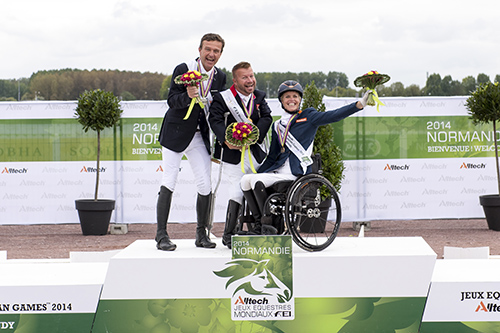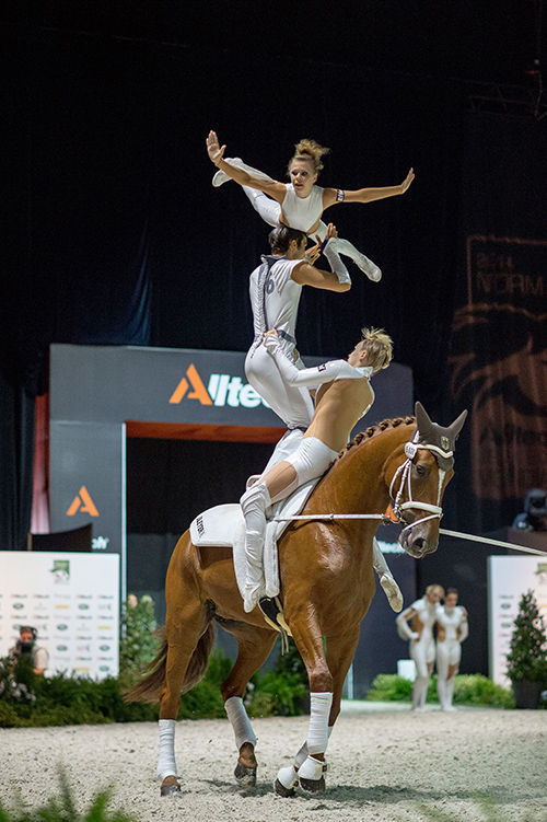 看到賽程表的那一刻,我們意識到在諾曼底的15天必將是滿滿的行程,兩周的時間內(nèi),8項官方馬術比賽和2項馬術表演賽在5個不同的城鎮(zhèn)輪番上演。放眼望去,諾曼底已充分利用了現(xiàn)有設施,這么多精彩的馬術項目聚集在一場盛會中,十分吸引眼球。 場地障礙:決戰(zhàn)世界之巔 個人場地障礙賽決賽155cm“Jumping Final Four”被安排在了整場盛事的最后一天舉辦,我們傾向于認為諾曼底把最精彩的比賽留到了最后。這場決賽是在4位王者騎手之間展開的巔峰對決——歷經(jīng)前 4天艱苦的比拼,只有最后總積分排名前四的騎手才獲得了躋身決賽的資格,在8道障礙不變的情況下,4位騎手按照既定出場順序相互交換馬匹進行4輪較量,總成績罰分最少和用時最短的奪冠。這場“游戲”式的終極較量,為世界馬術運動會所獨創(chuàng),組委會宣稱這是考驗騎手騎術的最佳測試。 4位騎手—— 法國的Patrice DELAVEAU、瑞典的Rolf-G?ran BENGTSSON、美國的Beezie MADDEN以及荷蘭的Jeroen DUBBELDAM,此前并沒有騎過其他選手的馬,在全場 2.1萬名觀眾的注視下,他們在上場前與赴賽馬匹有3分鐘熱身時間并可以試跳1次單橫木和1雙單橫木障礙。高手過招,切磋騎術,像這樣有“游戲”精神的比賽規(guī)則,一定是想把電影大片搬到現(xiàn)場來,難怪2萬多名觀眾愿意僅僅為這4位選手特意跑到卡昂。在最后一輪的較量中,法國騎手Patrice率先出場,以穩(wěn)定的零罰分發(fā)揮再次博得現(xiàn)場數(shù)萬人的掌聲禮遇(他此前有1個時間罰分),然而緊隨其后的實力派選手Jeroen DUBBELDAM頂住了壓力,技勝一籌,逆襲主場騎手,讓荷蘭的國歌在頒獎典禮中奏響。不管怎么說,運動比賽不以成績輪英雄,這些在賽場上用自己的努力表現(xiàn)為大家?guī)須g樂的選手都是英雄。 盛裝舞步:音樂會中的藝術與優(yōu)雅 盛裝舞步被國際馬聯(lián)定義為“馬術訓練水準的最高展示”,它不僅是一項運動也是一門藝術,尤以音樂自由式為優(yōu)雅的視覺和聽覺盛宴。觀眾以最熱烈的掌聲迎接選手出場,節(jié)奏明快的世界名曲在卡昂 D'Ornano體育場中響起中,馬以最舒展的體態(tài)舞蹈,騎手端莊地坐在馬背上,所有的控制都在最微小的變化中完成。 “技術考核”是舞步的根本:節(jié)奏、柔韌、動力、服從……選手把每一個動作做到最細膩和嚴謹。相比較盛裝舞步,自由式的音樂讓舞步比賽更加震撼輝煌。配樂師需對騎手和馬匹做足研究功課,音樂可原創(chuàng)可改編,音樂的韻律未必需要強調(diào)馬匹的每一個步伐,但它講述著選手獨一無二的故事,也感染著在場的觀眾。 殘疾人盛裝舞步:感動與震撼 殘疾人參與馬術賽事始于上世紀七十年代的北歐和英國,第一屆殘疾人盛裝舞步世錦賽于1987年在瑞典舉行,該項目于1996年首次被納入殘奧會賽程,并于2010年加入世界馬術運動會大家庭。目前,全球約有40個國家參與這項運動。殘疾人盛裝舞步賽按騎手殘疾程度分為五個等級,每級比賽都設有團體賽和個人賽。參賽馬匹都是健壯的,必須年滿6歲。殘疾人騎手通常會選用性情較溫馴的馬。今年,共有33個國家的100名殘疾人選手參與了本屆世界馬術運動會,他們參與的不僅僅是一個體育項目,而是通過這個項目表達了一種情感,一種對于生活健康向上的態(tài)度,一種不屈的精神。 三項賽:三個項目,一個冠軍 “三項賽”的命名,是因為騎手和馬要分別進行三個馬術項目的綜合比賽,即盛裝舞步賽、越野賽與場地障礙賽。盛裝舞步賽要求選手在規(guī)定時間和科目中完成28個馬術基礎動作的轉換,表現(xiàn)出精準、連貫與優(yōu)雅。場地障礙賽考驗選手的體能、爆發(fā)力和跳躍高度,等等。只有這兩項馬術運動基本功扎實,踏上越野賽的戰(zhàn)場才是所有騎手終極一生追求的目標。 越野賽場地只有在驗馬儀式后才對騎手開放,由騎手通過“走場地”來實地觀察感受賽場質(zhì)地,研究障礙物,把握起跳、奔跑、跨越的節(jié)奏等一系列方案,馬匹絕對不允許進場地半步。越野開賽后,騎手與馬一次性完成一道道固定障礙物或退出比賽。它被視為體育中最危險、艱辛和永遠懸念叢生的運動,完全依賴于騎手與搭檔的親密伙伴關系,彼此間的心靈相通,以及共同戰(zhàn)勝一切艱難險阻的氣概。 駕車賽:四馬齊驅的精妙配合 諾曼底世界馬術運動會最后4天,上演了盛裝舞步、馬拉松以及場地錐型障礙的四馬駕車賽。比賽規(guī)定只有駕車選手才能持韁控制馬匹,鑒于技術難度,賽事允許兩名身手矯健的馬夫隨車坐在后面。在舞步和繞障礙賽中,他們要幫助駕車選手處理馬車設備應急問題;在馬拉松比賽階段,他們靠移動身體重心來調(diào)控馬車的速度、保持平衡。 和我們熟知的三項賽極其相似,馬拉松賽是馬車賽最為精彩的環(huán)節(jié),它綜合地考驗了選手和馬匹對于上下坡、穿越水塘、急轉、速度控制等一系列技術難點。面對各種自然和人造障礙時,選手們叱咤疾行又謹慎小心,四馬齊驅驚心動魄。雖然駕車不像其他馬術運動那樣廣為人知,卻不得不承認這是一場技藝的較量,馬匹的選擇極其講究,駕車選手與馬匹、馬夫的完美而精準的配合是取勝的最佳籌碼。 耐力賽:距離最長的馬術賽 8月28日,以圣米歇爾山海灣作為天然的幕布,世界馬術耐力賽以拉芒什省薩爾蒂利小鎮(zhèn)為始開賽了。今年共49個國家參賽,260名騎手與3