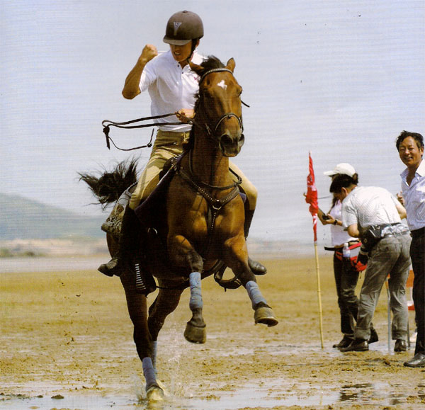 9月5日大早,帶著一顆滿懷憧憬的心,我和同事們一起在濱海路上奔馳,迫不及待地渴望親眼見證沙灘馬術(shù)比賽的情景。從小在北京長大,但對海的認識不深,尤其在海灘上的馬術(shù)比賽更是從來沒有見過。 早上9點,我們到達了比賽所在的田橫島附近的海灘。這里的海水正在慢慢地退卻,一道道海水侵襲過的印痕就是證據(jù)。聽著潮水碰擊地面的聲音,看著海浪拍打岸邊濺起的銀花,我似乎已然淋漓盡致地舒暢了一把。在這片寧靜的海灘上,心靈中的悄悄話就是對蔚藍色的憧憬;風,是咸咸的,帶著遠行漁船的澀腥味;被海浪沖到岸上小小螃蟹,正在快速而敏捷地移動著,匆匆尋找能棲身的小屋,眼睛里還閃爍著驚奇…誰能想到,再過半個小時,這里將會人聲鼎沸,一場精彩的沙灘馬術(shù)比賽即將打響。遠處,賽事的一些工作人員正在緊張地丈量著桶與桶之間地距離,一場激烈的繞桶比賽即將上演;還有一些工作人員正在將彩旗插在有較深的坑洼處,提醒速度賽的選手們注意安全;遠處,一艘擱淺的漁船和大海構(gòu)成了比賽背景,也將見證今天冠軍的誕生。 隨著太陽漸漸升高,今天的主人公們--那群可愛的馬兒紛紛踏上了他們的“領(lǐng)地”。東道主寶湖馬術(shù)俱樂部于總告訴我,現(xiàn)在的海灘是最好的馬匹運動的場地。 9點30分,田橫島附近沙灘上,由中國馬協(xié)新聞委員會主任蔡猛主持的寶湖杯沙灘馬術(shù)比賽正式開始了,青島市委汪廣深副秘書長、青島市體育局周鵬舉局長、青島市體育總會林志偉副主席、青島市體育局競技處陳勇處長以及即墨等領(lǐng)導紛紛前來觀看從未見過的比賽。五面繡有參賽隊名字的黃色旗幟在海風的吹佛下迎風飄揚,這五支參賽隊分別為:登程馬術(shù)俱樂部隊、浩洋馬術(shù)俱樂部隊、寶湖山莊馬術(shù)俱樂部隊、德瑞馬術(shù)俱樂部隊以及鳳凰馬術(shù)俱樂部隊。 首先進行的是馬術(shù)繞桶比賽,分為男子、女子業(yè)余組和專業(yè)三個組別的比賽。選手賽前已完成了抽簽決定騎乘哪一匹馬和出場順序。而本次比賽的裁判員很多都是初次相逢,來自各個馬術(shù)隊的人員和志愿者分布在賽場各處。 青島的馬術(shù)繞桶項目正處于起步階段,馬匹都是剛剛接受繞桶訓練時間都非常短,看得出在業(yè)余組的比賽中,馬匹還沒有形成見桶便繞的習慣,騎手們在轉(zhuǎn)彎時要費更大的力氣也浪費了時間。雖然成績不屬于佳績,但從騎手的身上讓我看到了果斷、勇敢、遇事不慌的素質(zhì),真是難能可貴,每組選手經(jīng)過兩輪的比賽后,最終取最佳成績進行排名。 比賽過程中讓我印象最深刻的是一名年僅9歲的小騎手宋鈺。他騎著矮馬在賽場上的那股不服輸?shù)膭艃?,人小馬也矮小,博得了觀眾的陣陣掌聲,當然他的馬上功夫也是有幾年的積淀。那可愛的樣子也讓成年人不由得笑得燦爛,大家似乎看到了青島馬術(shù)運動的希望,我們可以想象著小宋鈺長大后在賽場上會是怎樣一副畫面呢? 專業(yè)組中,各個馬場的優(yōu)秀騎手和馬匹協(xié)力合作發(fā)揮都十分出色。來自寶湖山莊馬術(shù)俱樂部的朝格圖與他的馬匹讓我眼前一亮。在北京,我也曾親歷過不少優(yōu)秀的繞桶比賽,而朝格圖的表現(xiàn)可與全國優(yōu)秀選手相媲姜,甚至讓我看到了世界大賽中繞桶時刻的影子。馬匹急停時蹄子深深插入沙地,馬身向桶側(cè)傾斜,繞過桶后具有極強的爆發(fā)力。我當時在想,如果換成我在馬上會不會已被馬的爆發(fā)力彈飛了呢? 看看這些牛仔們出色的表現(xiàn),只坐在看臺心里癢得厲害,和裁判員商議后我騎著寶湖山莊馬術(shù)俱樂部的一匹大青馬出現(xiàn)在女子業(yè)余組中。迎著風,踏著遺留的海水。乘著最可愛的動物馬匹縱情馳騁,海風把我的長發(fā)吹散在空中,風兒淘氣地鉆進我的衣領(lǐng)把襯衫撐得鼓鼓的,一種從未有過的人馬海灘情油然而生,我想,這份青島海邊騎乘的快樂,將永遠留存在我的記憶之中。 繞桶賽結(jié)束后,沙灘上就成了純血馬的天地,速度賽即將粉墨登場。1500米的比賽,選手們要在750米處折返。途中還有幾個由于地勢低而積存海水的洼地,馬匹要在能力范圍內(nèi)以最快的速度通過,每三位選手為一組同時比賽,業(yè)余組專業(yè)各三組,最終按照全部成績進行排名。全速奔馳的駿馬、飛濺起的晶瑩浪花,大海上遠處的帆船已成為攝影家的天堂。 賽后,青島市體育總會林志偉副主席被牛仔們的精神表現(xiàn)所折服,本不懂馬術(shù)的林副主席看完比賽也激發(fā)了內(nèi)心對馬的渴望,當即拜鳳凰城馬術(shù)俱樂部梁教練為師學習騎馬,并表示要全力支持青島馬術(shù)運動的發(fā)展,她說:“我希望馬術(shù)運動能夠成為帆船之外青島體育的又一個亮點?!?/div> 文/何鑫 |