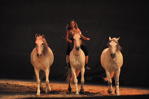 在白色的移動城堡里,人與馬演繹著一幕幕從遠古洞穴到草原、沙漠、叢林,從古老的東方到夢幻史詩般的歐洲川澤原野的世代情緣?!禖avalia 舞馬》就是這樣為身在高樓林立的都市,渾噩間常不知生亦何歡的人們送去了一點慰藉,引你去探尋生命本真的道路。 生活不止眼前的茍且,還有詩和遠方?,F實也許會困住我們的腳步,不過夢的空間是無限的。就在北京的朝陽公園,圓核經典就為我們造了一場人與馬的夢境。 這一次的造夢來源于一年多前圓核經典董事會主席陳澤盛先生在新加坡偶然觀看的一場《Cavalia·舞馬》的演出。他立即被其中所展現出的人與自然、人與動物間的愛和美所感動,所震撼。這種透過人與馬的情感交流而進行的藝術化互動,就像一縷光照進了精神的家園,帶給人以希望和振奮?!拔沂莻€占有欲很強的人,那一刻有個閃電般的沖動從我腦中劃過,形成了一道光,這道光就是我和《Cavalia·舞馬》談判的動力,我覺得自己有義務引進這樣精神價值高、主題健康的藝術作品?!苯涍^了漫長而艱難的談判,Cavalia的創(chuàng)始人Normand終于同意將版權賣給圓核經典,于是我們今天便能夠在北京走進這個夢境,慰藉那對于詩和遠方的惦念。 在白色的移動城堡里,人與馬演繹著一幕幕從遠古洞穴到草原、沙漠、叢林,從古老的東方到夢幻史詩般的歐洲川澤原野的世代情緣。 夜深人靜之時,清揚的音樂聲里,小女孩懷中的木馬悄然入夢,幻化成兩匹白馬,披著一身光明?!鞍。《嗝疵赖纳`!讓我擁有你吧,我從不淘氣?!比伺c馬就這么在夢中相遇了。馬是自由的精靈,小女孩是天使的化身,那份親昵會讓上帝都妒忌。 在久遠的歷史中,馬與人真正的相遇早已記錄在了遠古的洞穴里:漠漠黃沙,一群野馬,覺識了的人類,正釋放征服者的欲望。野馬怎會輕易屈從?但只要你能,神祗的預言里,早已寫下了人與馬的命運歸屬。不知經歷了多少春秋,又跨越了幾方大陸,在非洲的密野叢林之中,伴著咚咚鼓響,原始的人類無畏、狂放。大地之上,人與馬是野蠻的兄弟兩個,彼此助長生命的能量。在文明的啟蒙階段,是神話豐滿了人類生存的意念:渺遠星空,傳來天籟,神女仿佛隱約在繁星之間。兩位仙子,橙衫、紫衣,白馬騎士是她們的愛侶??罩械孽滠],馬上的依戀,愛情那般美妙,時光也會不忍去打擾吧。 春夏秋冬,季節(jié)輪回,不變的是人與馬的一路相隨:一群白色的阿拉伯馬,仿若林中快樂的精靈,森林王子的一個眼神,它們就會乖乖排好隊形;紛紛白雪落滿衣,仙子們在雪中起舞輕盈,播散春日的訊息;小溪中落下了馬兒的倩影,騎著駿馬的男男女女,怎能藏得住那顆悸動的心;又或許是到了精靈王國的秘境,山野湖沼間,都釋放著自由的氣息,人與馬都仿佛籠罩了光暈,又一起加入到水澤中的嬉戲。 還有古羅馬時代的英雄,立馬拉韁,連番越障,張揚著僨張的豪氣;吉普賽的野孩子在大笨馬的背上盡情撒潑;那個西部牛仔,你一看到他就會忍不住發(fā)笑;還有敦煌仙女的飛升,漢唐五花馬的繁盛,牛仔的狂野……你會被感動,會迷戀上有馬為伴的情景。 《Cavalia 舞馬》就是這樣為身在高樓林立的都市,渾噩間常不知生亦何歡的人們送去了一點慰藉,引你去探尋生命本真的道路。 曾記得電視劇《漢武大帝》中有一個場景:武帝帶著獵隊誤將上林苑里的馬當成野馬射殺了,衛(wèi)青趕過來跪倒在地,顫抖著雙手為馬包扎著傷口,憤恨地一遍遍大叫“漢朝人沒希望了,漢朝人不愛自己的馬,不愛自己的女人,漢朝人沒希望了,沒希望了!”這身嘶力竭的叫罵,不僅喚醒了武帝,也喚醒了多少觀眾。隱約間歷史總在一遍遍重演??萍嫉陌l(fā)展讓現今的人們有太多的途徑可以輕而易舉地接觸到各樣的言論、認知、文化、思想,而人們卻越發(fā)找尋不到足以信奉的人生教條。 有時候我們想,勤勞、善良、樸實、真誠,這些美好的德行也都是讓人尊敬的,可是為何偏偏少了一種讓人敬畏的大氣?恭敬自持,謙謙君子之風都是千百年來的傳承,不過人的骨血里終究還殘留著原始的野性。人性不足論,因為實在有太多的悲哀和爭議。禮教的規(guī)訓無疑能夠讓社會和諧,長幼有序,不過內心里或多或少會缺失了這種對于豪邁的釋放的灑脫。 在草原曠野上馳騁,與馬為伴的狂野和自由所匯聚起來的騎士精神,應該是一種源于對真正的瀟灑和尊嚴的推崇?!独菆D騰》中極力宣揚著人類的輝煌時代都曾遵從著狼性圖騰,可惜了農耕文明的溫床,將那野性逐漸消磨了。不過發(fā)展至今,私以為人類當更應該遵從馬性,一舉一動,一俯首,一投足,便能給你無可輕視的尊嚴,于無聲處彰顯不容踐踏的高貴,于低調中保持著和諧與平衡,這才是現代文明社會該有的風尚。無拘無束,也可以在風度和有禮中實現。我即便聽從于你,受你指揮,可這指揮也不曾降低了我生而獨立的思想和存在的價值。 “我坦率地稱,我所有的那一點點有價值的知識,全都是我受主人的教誨以及我聽它跟它的朋友們談話而得來的;我聽它們談話比聽歐洲最偉大、最聰明的人在集會上發(fā)表演講還要感到自豪。我欽佩這個國家的居民身強力壯、體態(tài)俊美、行動迅捷;這么可愛的馬兒,有著燦若群星的總總美德,使我對它們產生了最崇高的敬意?!边@是英國作家喬納森·斯威夫特在作品《格列佛游記》慧骃國的故事中描寫的一段話。讀到這里,情感似乎到達了一個點,不光是對這種生