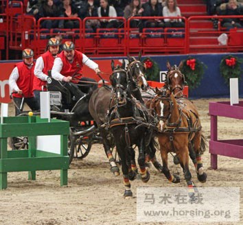 時(shí)間:2014 年2 月8-9 日 地點(diǎn):法國,波爾多 現(xiàn)代交通工具的迅猛發(fā)展,讓我們不再依賴馬匹出行,而曾經(jīng)高水準(zhǔn)的駕駛馬車技術(shù)如今漸漸演變成為人們津津樂道的一門藝術(shù),駕車因此成為馬術(shù)運(yùn)動(dòng)的重要一環(huán),吸引著眾多的騎手前來挑戰(zhàn)。 在駕車比賽中,一人可駕一馬、兩馬或四馬馬車。比賽規(guī)定只有駕車選手才能持韁控制馬匹。值得一提的是,四馬駕車比賽的技術(shù)難度要求有兩名身手矯健的馬夫隨車,根據(jù)比賽級(jí)別坐在選手的旁邊或后面,他們要在關(guān)鍵時(shí)刻幫助駕車選手控制馬匹、處理馬車的設(shè)備應(yīng)急問題;在馬拉松比賽階段,需要他們來調(diào)控馬車的速度、保持平衡。雖然駕車不像其他馬術(shù)運(yùn)動(dòng)那樣廣為人知,卻不得不承認(rèn)這是一場(chǎng)技藝的較量,馬匹的選擇也極其講究,而駕車選手與馬匹、馬夫的完美配合是取勝的最佳籌碼。 |