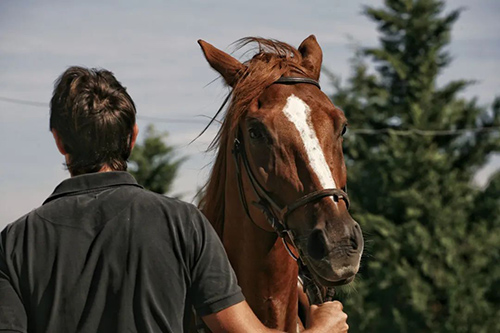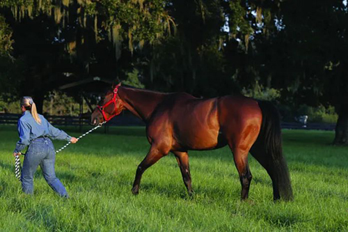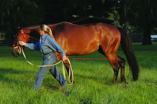了解原因 馬對人的行為可以回歸到這樣一個事實:馬作為自然界的獵物,本能地信任一個領(lǐng)導(dǎo)者來保護(hù)他們的安全。 把馬放歸牧場,觀察馬群動態(tài),你會觀察到很多問題。識別馬群中的領(lǐng)導(dǎo)馬并不需要花費很長時間,標(biāo)志之一是所有馬都服從ta。如果一匹馬不服從,領(lǐng)導(dǎo)馬會進(jìn)入該馬的個人空間,展示自己的支配地位并迅速讓ta離開。 如果你縱容ta對你做文章開頭列出的行為,ta會繼續(xù)像對待其他弱勢馬那樣對待你。 帕姆示范在牽馬過程中教會馬學(xué)會尊重人的空間 帕姆的右手在馬的頭部中間位置,隨時可以觸摸馬并讓馬遠(yuǎn)離她,也可讓馬保持正直而不倚靠她。在左手上的調(diào)教鞭的幫助下,她處在一個良好的牽引位置上。一臂的距離保證馬和她間隔開來。 帕姆說:“當(dāng)馬沒有禮貌和尊重時,即使不是故意的,他們也變得非常危險。在馬下,除非你有意邀請,否則不要讓馬進(jìn)入你的私人空間。你必須建立和維持邊界?!?/div> 改變不尊重的局面 教會馬尊重要從最基礎(chǔ)的互動開始:抓馬、牽馬和打理馬。