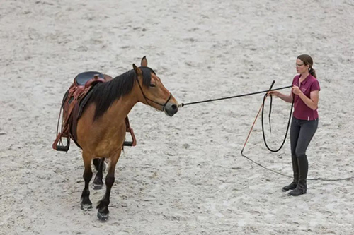 地面訓練是每一位馬術運動員都應該使用的方法。該方法是加強騎手與其馬的聯系以及確立自己威信的關鍵。本篇文章是五個好用而基礎的地面訓練第四篇,訓練你的馬打圈。 訓練你的馬打圈 此訓練的目的是讓馬移動他們的馬蹄,但是始終保持在你的四周。訓練馬匹圍繞你轉一周,該訓練也被稱為圈程。你可以使用牽引繩和調教鞭來完成這項訓練。如果沒有任何可供調教使用的繩索,也可讓馬在調教圈中進行該訓練。 這項訓練的用途可以是多種:訓練你的馬消耗多余的能量;查看馬匹馬蹄是否有問題,是否出現跛瘸等現象;放松僵硬的馬,矯正不良行為;讓騎手/馴馬師在不上馬鞍的情況下,訓練馬匹。 本文重點是將馬匹放入圓圈里訓練,以矯正馬的不良行為。想象一下,當你的馬總是抗議,總是表現不佳,不停地蹦跳、起揚,與其硬要上馬造成可能的傷害,不如在馬下進行相應的調訓。 在這種情況下,調訓表現不佳的馬匹,騎手或者馴馬師需要讓馬不停打圈,直到它們不再胡作非為。 據很多有經驗的調教師所講,馬匹最難的步伐是快步,因此要求馬匹快步,除非它們一直要求停下,不然讓它們保持快步。 原理 在野外,如果一匹馬不聽頭馬的命令,頭馬就會讓其他的馬不停追趕這匹不聽話的馬,這也是騎手或者馴馬師需要做的。這個做法可以樹立你的權威,向它們表明你不喜歡它們現在正在做的事。 其實很多細節(jié)可以告訴你,你的這匹馬究竟尊不尊重你。當你牽著它們的時候,它們試圖避開你的牽引方向,去吃一邊的草,這就表明了它們的不尊重。這時候,你需要將它們帶到調教圈里,訓練它們。這樣做是在告訴它們,你牽著它們時,并不是它們隨意吃草的時間。 打圈時的馬匹形態(tài) 馬兒也不喜歡總是工作。這個訓練會讓它們明白,如果出現不良行為,就意味著更多的工作。當你將這種訓練帶入到馬匹的日常訓練及生活中,你就會知道這對馬的調教非常有用,可以更快地讓它們學會尊重和服從。 技術 首先一只手握住繩索,一只手持調教鞭。停頓時,讓馬從你身邊經過。你需要向馬的后端邁出一步,然后用調教鞭催促它們。記住,不要真的將鞭子打在馬身上,因為這會讓它們心生膽怯而且會變得不信任你。 當馬進入調教圈后,將手中的繩索放出一部分,給它們一些自由度,但是不要讓繩子長到拖地,這樣繩索有可能絆倒馬匹,產生不必要的驚慌和錯誤。 想正確地指引馬,騎手/馴馬師需要了解自己的位置,為了讓馬在圓圈中沿正確的方向向前,保持騎手/馴馬師的身體一直對準馬的正中,調教鞭一直指向馬的臀部。 剛開始調訓的時候,馬兒可能會感到困惑,試圖向你靠近或者停下來。這個時候你要做的就是讓它們保持向前,不要停。如果你允許馬靠近你或者停下來,它們有可能養(yǎng)成壞習慣。 一旦馬匹適應了打圈,就可以讓它們進行步伐變換。用語言讓它們變換,這里注意,馬兒不太可能馬上對命令做出反應。 為了讓馬從慢步變?yōu)榭觳?,首先要語言上說出需要讓它們變換的步伐:“快步!”如果他們沒有反應,用鞭子催促它們。一旦它們做出反應,放下鞭子。 訓練馬匹停止,說“whoa(歐拉)”,如果它們沒有反應,可以拉動繩子。一旦它們放慢速度,請釋放壓力。 一旦你教會了馬匹圈程,那么你就有一種新的訓練方法來矯正馬匹的不良行為了。這個方法能有效地讓馬匹重新關注你,等待你的指令。 一段時間的訓練后,馬匹可以不費力地進行步伐變換。因為馬的注意力一般僅能保持幾分鐘,因此在圈程中,不斷變換步伐能夠讓它們保持專注,且不會太無聊。不斷變換的步伐也可以將它們分散的注意力拉回來,重新回到騎手或馴馬師身上。 |