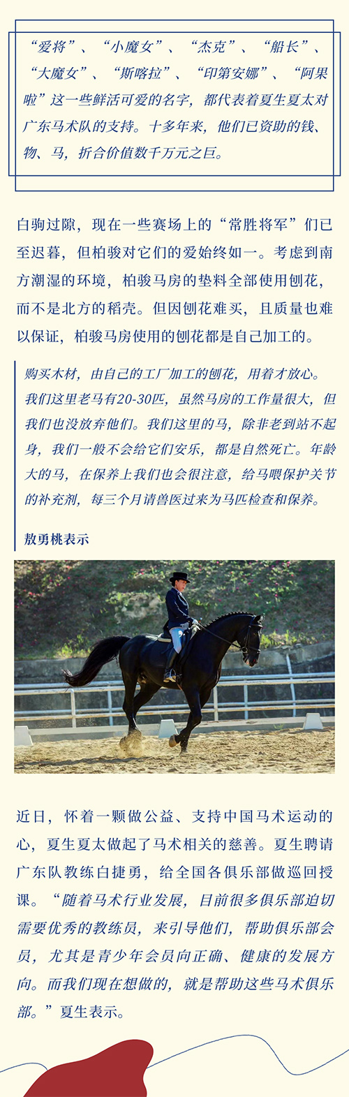 1982年12月8日,中國(guó)馬術(shù)協(xié)會(huì)成為國(guó)際馬術(shù)聯(lián)合會(huì)正式成員,自此中國(guó)馬術(shù)邁出了重要的一步。至2022年,中國(guó)的馬術(shù)運(yùn)動(dòng)已歷經(jīng)四十年風(fēng)風(fēng)雨雨?!恶R術(shù)》雜志推出《中國(guó)馬術(shù)四十年》特別策劃,講述那些為中國(guó)馬術(shù)做出貢獻(xiàn)的人物故事。時(shí)光易逝,彩云易散,縱然歷史的車輪滾滾向前,我們依舊能在時(shí)光的車轍中,找到值得我們銘記的那些人、那些事。 |