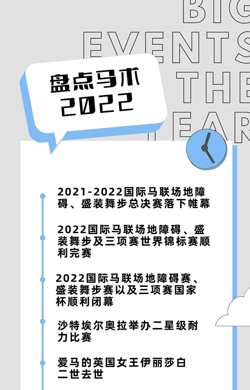 年終歲末,馬術(shù)人緊張繁忙的一年過去,新一年的挑戰(zhàn)正迎面走來?;貞涍^去的一年,不僅是國內(nèi),全球的馬術(shù)人都在疫情的壓力下,在各種困難面前,尋求著新的解決辦法,探尋著新的認(rèn)知和專業(yè)領(lǐng)悟…… 盤點(diǎn) 2022 Top 1 2021-2022國際馬聯(lián)場地障礙、盛裝舞步總決賽落下帷幕 2022年4月,在德國的萊比錫,浪琴表國際馬聯(lián)場地障礙世界杯決賽成功舉辦。各位頂尖馬術(shù)人自2021年秋開始的辛勤努力終于迎來了高潮。 因疫情原因,這場賽事屢遭取消,此次終于歸來,并迎來冠軍的最終決戰(zhàn)。在第一天,瑞士騎手馬丁·福斯(Martin Fuchs)和“Chaplin”在賽后領(lǐng)先,但在第二天被美國騎手麥克萊恩·沃德(McLain Ward)和“Contagious”超越。第三天馬丁·福斯再次搭檔“Chaplin”,這一次一人一馬獲零罰分,一舉超越遭遇4個(gè)障礙罰分的克萊恩·沃德,奪得冠軍。荷蘭騎手哈里·斯莫爾德(Harrie Smolders)和瑞典騎手詹斯·弗雷德里克森(Jens Fredricson)分獲了該賽事的亞軍與季軍。 同在4月,德國萊比錫也舉辦了國際馬聯(lián)盛裝舞步世界杯。杰西卡·馮·布雷多-溫德爾在她的騎乘伙伴“TSF Dalera BB”的幫助下成為了冠軍。除此項(xiàng)賽事外,東京奧運(yùn)會(huì)盛裝舞步個(gè)人冠軍、歐洲錦標(biāo)賽盛裝舞步個(gè)人冠軍,杰西卡也都是在“TSF Dalera BB”陪伴下獲得的。賽事的亞軍由丹麥騎手凱瑟琳·勞德魯普-杜福爾摘得。賽后,德國騎手伊莎貝爾·韋斯帶著它17歲的馬匹“Weihegold OLD”舉行了馬匹退役儀式。 盤點(diǎn) 2022 Top 2 2022國際馬聯(lián)場地障礙、盛裝舞步及三項(xiàng)賽世界錦標(biāo)賽順利完賽 2022年8月,在丹麥海寧,2022年國際馬聯(lián)場地障礙世界錦標(biāo)賽鳴鑼開賽。此次賽事共有103對(duì)人馬組合參與角逐,同時(shí)進(jìn)行個(gè)人及團(tuán)體爭奪,團(tuán)體獎(jiǎng)項(xiàng)在為期四天賽事的第三天決出。 在比賽第一天,法國騎手朱利安·埃帕亞爾(Julien Epaillard)個(gè)人領(lǐng)先,瑞典隊(duì)團(tuán)體領(lǐng)先。第三天瑞典隊(duì)保持了三天的優(yōu)秀戰(zhàn)績,現(xiàn)世界排名第一的瑞典騎手亨里克·馮·埃克曼(Henrik von Eckermann)和隊(duì)員詹斯·弗雷德里克森(Jens Fredricson)以及馬爾坎·科斯莫波利特(Markan Cosmopolit)為瑞典拿下世錦賽團(tuán)體金牌。亞軍和季軍由荷蘭和英國分獲。 在賽事最后一天,亨里克·馮·??寺^續(xù)保持優(yōu)勢,奪得個(gè)人賽金牌,比利時(shí)騎手杰羅姆·蓋瑞(Jér?me Guery)和荷蘭騎手邁克爾·范·德弗勒騰(Maikel van der Vleuten)分獲銀銅牌。 在丹麥海寧斯圖科里阿斯科體育場,2022國際馬聯(lián)盛裝舞步錦標(biāo)賽拉開帷幕。經(jīng)幾天角逐,由卡特琳·杜福爾(Cathrine Laudrup-Dufour)、丹尼爾·安德森(Daniel Bachmann Andersen)、卡莉娜·克呂特(Carina Cass?e Krüth)和娜娜·拉斯穆森(Nanna Merrald Rasmussen)組成的丹麥隊(duì)不負(fù)眾望,在主場奪得團(tuán)體金牌。英國隊(duì)以總分一個(gè)多百分點(diǎn)的差距屈居第二,衛(wèi)冕冠軍德國隊(duì)獲得第三名。 英國騎手夏洛特·弗萊(Charlotte Fry)和馬匹“Glamourdale”奪得雙金,在特別大獎(jiǎng)賽和個(gè)人自由演繹中獲得了最高榮譽(yù)。勞德魯普·迪福爾(Laudrup-Dufour)在賽事中獲得兩枚銀牌,荷蘭騎手丁加·范列爾(Dinja van Liere)獲兩枚銅牌。 在意大利普拉托尼舉行的國際馬聯(lián)三項(xiàng)賽世界錦標(biāo)賽無疑是2022年的亮點(diǎn)。2022年9月,三項(xiàng)賽愛好者聚集在意大利羅馬郊外,沉浸在1960年奧運(yùn)會(huì)馬術(shù)比賽舉辦地的美麗環(huán)境中。 經(jīng)過為期四天的賽事,個(gè)人冠軍由英國騎手雅斯門·英厄姆(Yasmin Ingham)獲得,她搭檔“Banzai du Loir”首次參加世錦賽就贏得了個(gè)人最高榮譽(yù)。這位25歲的冠軍從一開始就是一直在排名的前三,當(dāng)邁克爾·榮格(Michael Jung)在最后一天打落兩桿時(shí),她令人難以置信的越野賽表現(xiàn)和場地障礙賽中的零罰分鞏固了她的勝利。個(gè)人賽第二名由奧運(yùn)冠軍、德國騎手朱莉婭·克拉耶夫斯基(Julia Krajewski)獲得,新西蘭騎手蒂姆·普萊斯(Tim Price)獲得第三。 在團(tuán)體賽中,英國隊(duì)一開始占據(jù)主導(dǎo)地位,但漫長的越野賽常常帶來出人意料的結(jié)果,在普拉托尼也不例外,最終,德國隊(duì)團(tuán)體排名升至第一,美國隊(duì)摘得一枚銀牌,新西蘭隊(duì)獲銅牌。 盤點(diǎn) 2022 Top 3 2022國際馬聯(lián)場地障礙賽、盛裝舞步賽以及三項(xiàng)賽國家杯順利閉幕 于2022年夏初開始舉辦的國際馬聯(lián)場地障礙賽國家杯一直持續(xù)到秋季,總決賽在西班牙巴塞羅那舉行。 賽事共分為兩組,排名靠前的隊(duì)伍晉級(jí)周日下午決賽,而沒有進(jìn)入決賽的隊(duì)伍則在周六晚上爭奪挑戰(zhàn)杯。2022的國際馬聯(lián)場地障礙賽國家杯挑戰(zhàn)杯由墨西哥隊(duì)將勝利帶回了家,僅以一個(gè)罰分結(jié)束了整場比賽。 周日,比利時(shí)隊(duì)在領(lǐng)隊(duì)彼得·溫伯格(Peter Weinberg)的指揮下,贏得了他們繼2015年及2018年的又一個(gè)冠軍頭銜。他們不僅以零罰分結(jié)束了此次的巴塞羅那之行,同時(shí)還獲得了2024年巴黎奧運(yùn)會(huì)的入場券。 瑞典隊(duì)奪得了FEI盛裝舞步國家杯冠軍。在此期間,她們一直受到丹麥隊(duì)員的挑戰(zhàn)。 帕特里克·基特爾(Patrik Kitte