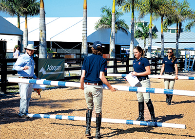 當你專心致志于比賽過程的時候,也許并沒有留意賽場的路線設計中融入了多少心思。事實上,設計師需要精心考慮每一道障礙的高度、寬度、形狀、顏色和造型以及這道障礙與其他幾道障礙和賽道整體布局的相對位置關(guān)系,在搭建安全、合理、流暢的路線的同時,考查你和馬的能力和技巧。2011年1月,在美國佛羅里達州惠靈頓市舉辦了一場為期一周的George H. Morris馬術(shù)訓練營,作者Anthony D'Ambrosio以訓練營期間最后一天由他親自設計的路線為例,引領讀者跟隨路線順序走場,體驗每道精心設計的障礙。 本路線設計的初衷是檢驗這些參加訓練的積極進取的年輕障礙賽騎手們在一周學習時間里所掌握的技巧。比賽采用國家杯的賽事形式,也就是說,參賽者被分成若干隊,每位隊員均進行兩輪比賽,這有助于騎手們從第一輪比賽中汲取經(jīng)驗教訓,并在第二輪中做出改進。 本文將逐步引導你如何像路線設計者一樣思考,明確考官的“出題意圖”。 路線設計并不一定都是從第一道障礙開始的。在Anthony設計這一路線的時候,考慮到George想要在比賽場地中加入一道水障,所以他最先著手從水障(它和這一周訓練課程所用的水障相同)開始。特別有挑戰(zhàn)性的障礙,比如說水障和大型的三橫木障礙,會改變整個賽場路線的走向。 你為了讓馬零失誤跨越這種障礙,或者防止其在障礙前停下來或逃避障礙(特別是當馬對這種障礙心存恐懼的時候),往往會調(diào)動馬的興奮點,但這也會使它的注意力在接下來的比賽中稍有下降,也會讓你在跨越剩余障礙的時候調(diào)整騎乘方式。因此,一般說來,在場地中越早設置水障,比賽的難度也就越高。在本文的路線圖中可以看到,本場比賽的水障設置在了第7道,幾乎是在整場比賽的中間時刻出現(xiàn)這種難度較大的障礙。此外,設計師還通過在水障前后設置其他障礙向騎手提出各種考驗。 第1道障礙 任何比賽的第一道障礙都需要付出一定的努力,這取決于馬的經(jīng)驗和障礙的難度。經(jīng)驗較少的馬需要騎手更多的幫助以專注于當前的任務,而不被場地上的其他景象分散注意力。經(jīng)驗較為豐富的馬則熟悉整個流程,對第一跳充滿了期待。第一道障礙十分特殊,它迫使你向遠離進場口的方向行進,相當于是讓習慣群居的馬做出非本能的行為。除此之外,本場比賽的第一道障礙是道伸展障礙(雙橫木障礙),這就需要馬付出更多的努力。而且這是一道上升式伸展障礙,前面的橫桿高度低于后面的橫桿,比兩道等高橫桿的方形伸展障礙更能激起馬跨越障礙的欲望??偠灾?,這些因素都需要你激起馬的干勁,在接近第一道障礙的時候,你有充足的時間調(diào)整步伐,手和腿要與馬保持緊密的聯(lián)系,引導它正直地跳過這道障礙。 第2道障礙 在第一跳之后,要在左轉(zhuǎn)的同時保持住良好的狀態(tài)去面對第二道高大而堅固的磚墻障礙。時間有限,大幅度的轉(zhuǎn)彎是不可能的,因此你不需要繞過第5道障礙,只需要做個簡潔的小轉(zhuǎn)彎,讓馬保持好平衡并且積極向前。許多騎手和馬不會在平日練習這種磚墻障礙,而是選用頂部放置了若干橫桿的較矮的磚墻障礙來訓練,所以在比賽的時候騎手和馬要果斷并充滿信心。注意:在平日讓馬練習跨越盡可能高的磚墻不失為一個好主意。 第3道障礙 從第2道障礙向下一道障礙行進的時候,需要從第8道障礙的左側(cè)繞過去,這一路程稍長,所以你有幾秒鐘的時間稍事放松。但在右轉(zhuǎn)過后,隨即將迎來第3道障礙,而且這道障礙本身是純棕色的,非常容易讓馬把它與場地的顏色相混淆,所以在轉(zhuǎn)彎之后你需要立即讓它將注意力集中在障礙桿上。比起鮮艷色調(diào)的障礙桿,馬給予溫和色調(diào)的障礙的重視更少,因為溫和的顏色對馬眼睛的刺激不夠強烈。同樣地,相對于單純顏色的障礙桿,馬對富有圖案的障礙更加重視。本場比賽中,第3道雙橫木障礙的跨度為4.6英尺(1英尺=0.3048米),馬需要有足夠的動力充分伸展軀體去跨越。如果能漂亮地完成這一跳,騎手和馬在接下來的比賽過程將更為流暢。 第4a/b道障礙 從第3道障礙到第4道障礙的距離是整個路線中第一段考驗相對距離的路程。Anthony認為兩道連續(xù)障礙的間距至少小于9個馬匹跑步步幅的情況下就屬于“相對距離”(本文另有關(guān)于測量障礙間距的詳細介紹)。這段距離約為99英尺,需要馬向前7步完成。設計師的本意是鼓勵騎手跨過這個由伸展障礙(雙橫木障礙)和垂直障礙(單橫木障礙)組成的復合障礙,因為兩道障礙之間相隔2個步幅。經(jīng)過平日大量的訓練,很多馬都習慣在跨越組合障礙時收縮步伐,這樣導致它在跨越任何類型的組合障礙時往往都不去主動向前跳躍。如果它這次依然如此,那么跳完障礙4a落地之后距離障礙4b的距離將會變長,馬由于起跳點不夠理想可能會導致掉桿。4a還是一道利物浦障礙,這可能會嚇退一些馬,但是一般如果在這里能成功跳過,這將或多或少地提升它的自信,有助于順利地跨過之后的水障。另外,這個階段你還是在遠離進場口的方向,所以騎手還需要多加留意。 第5道障礙 前幾道障礙都需要馬積極向前,是時候讓你展示能讓馬安靜而穩(wěn)步前行的技巧了。在路線圖中,4b和第5道障礙之間向右彎曲的虛線表明兩者距離是105英尺,即8個穩(wěn)定的步幅。這道設置“微妙”的障礙尤其具有挑戰(zh