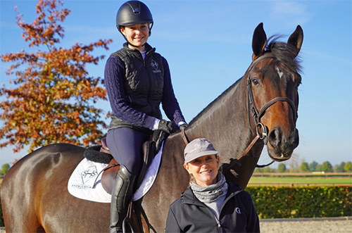 本文采訪英國(guó)盛裝舞步教練,莎莉·阿姆斯特丹 (Sally Amsterdamer),她最為擅長(zhǎng)場(chǎng)地障礙的平地教學(xué)工作。她的學(xué)生眾多,其中包含愛(ài)爾蘭馬術(shù)隊(duì)安德魯·伯恩斯(Andrew Bournes)以及里奇·莫洛尼(Richie Moloney),澳大利亞奧運(yùn)騎手馬特·威廉姆斯(Matt Williams),沙特奧運(yùn)騎手阿卜杜拉·沙特(Abdullah Al Saud)王子以及美國(guó)馬術(shù)隊(duì)騎手艾莉森·費(fèi)爾斯通(Alison Firestone)。 阿姆斯特丹在采訪中講到:“騎乘中最常見(jiàn)的問(wèn)題是內(nèi)方韁用得太多。當(dāng)你把馬的頭向內(nèi)拉得太多時(shí),它的肩膀就會(huì)掉出來(lái),馬是不會(huì)轉(zhuǎn)彎的?!痹趫?chǎng)地障礙中,這一致命問(wèn)題可能會(huì)導(dǎo)致你耗費(fèi)寶貴的秒數(shù)時(shí)間,這可能意味著你的最終排名中進(jìn)不了前六。 在高級(jí)別障礙比賽中,“成績(jī)不僅取決于十分之一秒,甚至是百分之一秒,所以每一次轉(zhuǎn)彎都非常重要,因?yàn)榈谝幻偷谌g可能就只有百分之二秒的差距?!彼硎?。 在這里,阿姆斯特丹分享了一種提高速度和轉(zhuǎn)彎精度的平地練習(xí)——方形陣。 第一步:從慢步開(kāi)始 首先,馬要充分地?zé)嵘?,并在快步和跑步時(shí)做一些圈乘和方向變換。 大部分練習(xí)都是從慢步開(kāi)始。剛開(kāi)始時(shí),這個(gè)方形應(yīng)該很大。如果你是第一次嘗試,要采用20米或者更大的方形,而且方形的位置不要靠近圍欄邊或墻邊,通過(guò)騎手的輔助來(lái)讓馬轉(zhuǎn),而不是外界。 第二步:注意重量和腿的輔助 在轉(zhuǎn)彎前,把更多的重量放在內(nèi)側(cè)坐骨上,讓馬為轉(zhuǎn)彎做好準(zhǔn)備。然后通過(guò)使用外方腿來(lái)要求馬轉(zhuǎn)彎,如果馬轉(zhuǎn)得不夠快,增加外方腿的壓力。在慢步中,方形的角小而尖。當(dāng)馬能很好地跟隨騎手重力輔助時(shí),腿輔助力量可以減少。 第三步:轉(zhuǎn)彎注意用兩只手 “在做腿輔助使用的同時(shí),均勻地使用兩側(cè)的韁繩來(lái)轉(zhuǎn)動(dòng)肩膀。這是真的用內(nèi)方的重量和外方腿輔助來(lái)讓馬轉(zhuǎn)彎。當(dāng)然,雙手這時(shí)也要一起幫助,但注意雙手并不是主要的輔助?!卑⒛匪固氐だ^續(xù)說(shuō)。 “你看那些大獎(jiǎng)賽的舞步騎手在跑步后肢旋轉(zhuǎn)時(shí),真的就是跑步中原地轉(zhuǎn)動(dòng),他們并沒(méi)有拉內(nèi)方韁。這都是來(lái)自于騎手的騎坐輔助,用你的身體,靠骨盆上的運(yùn)動(dòng)來(lái)騎馬的。而你的手臂只是配合著在做同一件事情。” 這個(gè)方形練習(xí)的四個(gè)角就像是跑步后肢旋轉(zhuǎn)中的轉(zhuǎn)彎。 第四步:不要使用屈曲 這個(gè)練習(xí)是沒(méi)有屈曲的,和騎圈乘不一樣。這個(gè)練習(xí)就純粹是為了讓馬的肩膀轉(zhuǎn)得更快,讓馬對(duì)你騎坐輔助和外方腿用力時(shí),有很好的反應(yīng)。 第五步:在快步中重復(fù) 一旦馬明白了慢步練習(xí)中的各種輔助,就可以快步重復(fù)這個(gè)練習(xí)。注意!如果在輕快步中進(jìn)行,重量輔助在內(nèi)方腳鐙上,而不是內(nèi)方坐骨上。 “可以是以比較慢的快步進(jìn)行?!卑⒛匪固氐け硎?。“通常情況下,我總是根據(jù)訓(xùn)練范圍進(jìn)行訓(xùn)練,必須有良好而主動(dòng)的節(jié)奏和良好的推進(jìn)力。但當(dāng)你教馬做某些練習(xí)時(shí),可以稍微放慢些。讓馬聽(tīng)從這些特定的輔助來(lái)進(jìn)行轉(zhuǎn)彎。而且,轉(zhuǎn)彎的角度也可以不像慢步時(shí)那么小,但角必須是角,不能是像四分之一圓那樣的曲線?!?/div> 第六步:進(jìn)入跑步 在馬足夠強(qiáng)壯的情況下,當(dāng)能輕松地快步做這個(gè)練習(xí)后,你就可以用跑步練習(xí)。騎手必須在真正轉(zhuǎn)彎前的三步讓馬進(jìn)行一些收縮。所以,這也是一個(gè)很好的收縮練習(xí)。收縮能幫助馬肩膀輕松,重量壓后。這樣馬前軀更輕,肩膀轉(zhuǎn)得更快了。 第七步:增加一點(diǎn)挑戰(zhàn)性 最后的跑步方陣練習(xí),才是障礙騎手在賽場(chǎng)上要做到的。所以,當(dāng)你跑步可以進(jìn)行20米的方形后,可以試著進(jìn)行15米方陣。 故障排除 如果你的馬肩膀的一側(cè)僵硬,不能很好地轉(zhuǎn)動(dòng),你可以讓它朝外方有小幅屈曲,但不要太多,因?yàn)槟悴皇窍MR掉進(jìn)去,你是想讓馬轉(zhuǎn)進(jìn)去。 高手訓(xùn)練 等馬的后軀足夠強(qiáng)時(shí),將正方形變成三角形。這時(shí)的角度變小了,馬不得不將更多的重量放在后肢上,并真正激發(fā)內(nèi)方后腿。 但不要讓年輕馬進(jìn)行三角形練習(xí)。練習(xí)的難度取決于馬的力量和訓(xùn)練水平。因此,對(duì)于10歲但力量薄弱的馬和一匹雖然才6歲但天然收縮能力好的強(qiáng)壯的馬來(lái)說(shuō),所進(jìn)行的訓(xùn)練程度并不一樣。一般來(lái)說(shuō),不建議6歲以下的馬進(jìn)行三角形練習(xí)。重復(fù)一遍,這都與馬的力量有關(guān)。 最后,這兩種訓(xùn)練也能提高圈乘能力,因?yàn)槟隳茉诿總€(gè)跑步中保持肩膀轉(zhuǎn)動(dòng),而又不過(guò)多使用內(nèi)方韁。 文/卡莉·斯帕克斯 編譯/I Do舞步學(xué)院 劉麗娜 |