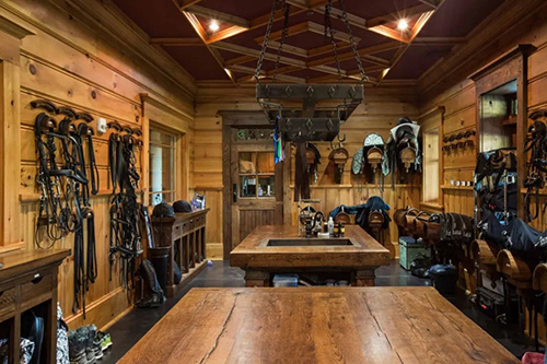 5、開發(fā)新空間 如果你的鞍具房空間已不足,可以考慮用集裝箱、便攜式存儲箱,甚至篷房改造成鞍具房的置物間。金屬掛鉤和鐵絲掛籃在這種場景下實用且美觀。 6、發(fā)揮創(chuàng)造力 發(fā)揮充分的想象力可以讓你的鞍具房布置得更經(jīng)濟實用。