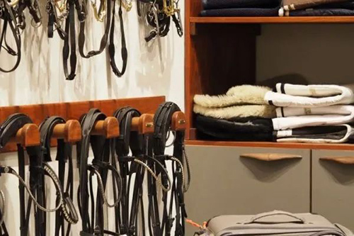 3、開始工作 清理干凈鞍具房,然后按照計劃去放回鞍具。確保一些必須工具是全的,因為這過程中你可能需要很多工具,如錘子和鐵掛鉤,以將鞍具掛在墻上。有條件的話可以雇傭一位裝修師傅幫助你。 注意!將孩子們要用到的裝備放到他們能夠得到的地方。日常比賽需要的、較重的物品需要放到距離出口近的地方。 一些不可忘記的元素: