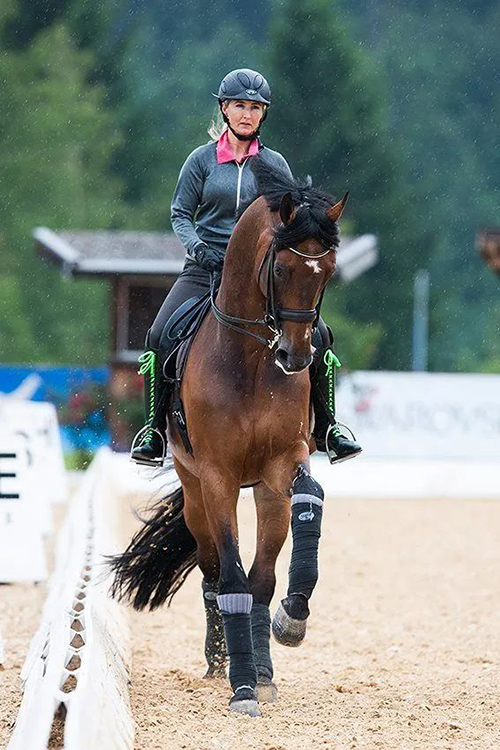 在年輕馬調(diào)訓(xùn)方面,Cathrine 會(huì)盡早教小馬基本的規(guī)矩,在馬養(yǎng)成壞的習(xí)慣前,先建立起良好的行為準(zhǔn)則。從零開(kāi)始建立好習(xí)慣,比改正壞習(xí)慣要容易得多。通常在3歲前,Cathrine 會(huì)讓小馬自由生長(zhǎng),到了3歲后,會(huì)從馬房中開(kāi)始,教年輕馬基礎(chǔ)的被拴住站立、刷理、搬蹄、牽行等。從小和騎手接觸得越多,長(zhǎng)大后馬匹就會(huì)更服從騎手。但在年輕馬調(diào)訓(xùn)的階段,要注意方式方法,也不要給馬過(guò)大的壓力,讓馬學(xué)不會(huì)從而自信心受挫。 “對(duì)我來(lái)說(shuō)很重要的一點(diǎn),是在日常訓(xùn)練中讓馬不斷見(jiàn)識(shí)新鮮的東西。我在調(diào)訓(xùn)馬匹中,會(huì)變換各種訓(xùn)練方式,甚至有時(shí)候會(huì)讓馬跳一跳。我要讓馬見(jiàn)識(shí)這個(gè)世界的多彩?!?/div> 在日常訓(xùn)練中,Cathrine 并不會(huì)只專注于比賽內(nèi)容,她會(huì)帶她的舞步馬做一些簡(jiǎn)單的障礙訓(xùn)練,通過(guò)這種方式,會(huì)讓馬不覺(jué)得訓(xùn)練枯燥,更有動(dòng)力工作。除了場(chǎng)地內(nèi)的訓(xùn)練外,Cathrine 每周會(huì)帶馬到戶外休閑騎乘1-2次,幫助馬匹脫敏的同時(shí),也能更好地建立起馬匹對(duì)自己的信任和依賴。 針對(duì)于不同性格的馬匹,在訓(xùn)練方式上也需要做出改變。比如對(duì)于特別急躁的馬來(lái)說(shuō),在馬房的布置、日常飼喂和訓(xùn)練內(nèi)容中,要盡量幫助它們保持放松和舒適;而對(duì)于比較懶散的馬匹,則會(huì)更多地變換新鮮的訓(xùn)練方式,幫助它們提起對(duì)訓(xùn)練的興趣。 “無(wú)論是大獎(jiǎng)賽騎手還是初學(xué)者,多練習(xí)步法轉(zhuǎn)換,都可以幫助馬匹變得更服從和靈敏?!?/div> 在熱身中,步法轉(zhuǎn)換時(shí)Cathrine 最首要的訓(xùn)練內(nèi)容,快步和慢步的轉(zhuǎn)換,快步和跑步的轉(zhuǎn)換。多做步法的變換,會(huì)讓馬匹更加將注意力集中在騎手身上,會(huì)幫助急躁的馬安靜穩(wěn)定;幫助懶惰的馬開(kāi)始思考,進(jìn)入工作狀態(tài)。 對(duì)于年輕馬,或是平衡不夠好的馬,Cathrine 會(huì)讓它們交替做20米的圈程和沿圍欄的直線跑步,對(duì)于平衡感差的馬,從圈程出來(lái)后,很快就會(huì)失去平衡和正直。當(dāng)馬失去平衡后,再回到圈程,交替訓(xùn)練,循序漸進(jìn)地幫助馬匹學(xué)會(huì)在直線上保持平衡和正直。 “我不喜歡過(guò)于靜態(tài)的訓(xùn)練,我習(xí)慣將多個(gè)方向的訓(xùn)練交叉融合在一起,多變換節(jié)奏、變換方向、變換正直和彎曲,對(duì)馬來(lái)說(shuō)更有趣也更有挑戰(zhàn)。” Cathrine 會(huì)在年輕馬階段,就開(kāi)始教馬練習(xí)橫向運(yùn)動(dòng),在馬4歲左右時(shí),開(kāi)始沿著圍欄/墻壁的簡(jiǎn)單腰內(nèi)練習(xí),幫助馬匹建立平衡的同時(shí),這也是后肢深踏的雛形訓(xùn)練。平地的訓(xùn)練熟練后,可以開(kāi)始進(jìn)行騎行的練習(xí)。騎手腿部給馬指令,讓馬偏橫步做5米左右,隨后讓馬恢復(fù)直線行走,如果馬匹能夠保持良好的平衡,則可以再次嘗試5米的偏橫步。偏橫步和直線的交替,可以幫助馬匹迅速找到平衡。 “馬下的健身,給我在馬背上的騎姿,帶來(lái)了很大的改變,尤其在壓浪中。” Cathrine 除了每天騎乘8匹馬,每周還會(huì)去健身房至少6次。如果騎手自身的肌肉力量和身體素質(zhì)不夠,在長(zhǎng)時(shí)間的騎行中,很難給馬精準(zhǔn)到位的輔助。有氧和無(wú)氧訓(xùn)練,提升體能和肌肉力量,才能更好地騎乘。 |