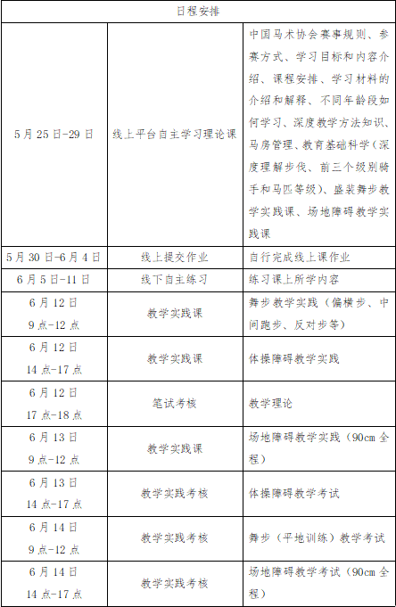 各相關(guān)單位、會(huì)員、馬術(shù)愛好者: 馬術(shù)二星級(jí)專業(yè)教練培訓(xùn)考核將于2023年5月25日-6月14日在無錫陽山夢想馬術(shù)學(xué)府開班。本次活動(dòng)以線上、線下相結(jié)合方式進(jìn)行培訓(xùn)與考核,聘請(qǐng)中外專家聯(lián)合授課??己撕细裾邔⒈皇谟柚袊R術(shù)二星級(jí)專業(yè)教練員證書,還可進(jìn)一步申請(qǐng)中級(jí)職稱。 中國馬術(shù)星級(jí)教練體系引入國際權(quán)威騎術(shù)及教學(xué)所需知識(shí)技能,由國際國內(nèi)專家聯(lián)合授課。培訓(xùn)借助現(xiàn)代化技術(shù)豐富教學(xué)方式,提供跟蹤輔導(dǎo),提升教練員職業(yè)素養(yǎng)和技能。 現(xiàn)就本次培訓(xùn)考核相關(guān)事宜通知如下: 一、培訓(xùn)考核時(shí)間、地點(diǎn) (一)線上培訓(xùn):2023年5月25日-29日,學(xué)員通過網(wǎng)絡(luò)授課形式,自主登陸參加集中時(shí)段的線上學(xué)習(xí)。 (二)線下練習(xí):2023年5月30日-6月4日,學(xué)員自行完成線上作業(yè);6月5日-11日,自主線下練習(xí)。 (三)線下輔導(dǎo)和實(shí)踐考核:2023年6月12日-14日,在無錫陽山夢想馬術(shù)學(xué)府進(jìn)行線下集中輔導(dǎo)與實(shí)踐考核。 二、培訓(xùn)考核內(nèi)容 ※具體日程安排詳見后續(xù)日程安排表,根據(jù)報(bào)名人數(shù)可能會(huì)有調(diào)整。 三、報(bào)名資格要求 (一)獲得一星專業(yè)教練等級(jí)滿1年; (二)中馬協(xié)中二級(jí)及以上級(jí)別或具備中二級(jí)騎手相應(yīng)能力;獲取二星級(jí)教練證需要具備中二級(jí)及以上級(jí)別騎手等級(jí)。 四、報(bào)名事項(xiàng) (一)報(bào)名時(shí)間:自即日起至2023年5月22日12:00前報(bào)名并提交審核材料于報(bào)名專用郵箱,名額數(shù)量有限,報(bào)名從速,逾期報(bào)名無效。 (二)報(bào)名資料:報(bào)名表電子版,一寸白底照片2張及電子版,身份證復(fù)印件,馬術(shù)項(xiàng)目相應(yīng)騎手等級(jí)證書復(fù)印件。 (三)報(bào)名方式:將報(bào)名表、一寸白底照片電子版等文件打包發(fā)送至報(bào)名郵箱?,F(xiàn)場報(bào)道時(shí)需提供2張一寸白底照片(背面寫姓名)及身份證復(fù)印件。 報(bào)名郵箱:liu.ying@ceatpo.com (四)報(bào)名確認(rèn):學(xué)員報(bào)名即需提交審核材料,確認(rèn)后請(qǐng)于截止日期前繳納報(bào)名費(fèi),最終以報(bào)名確認(rèn)信息或報(bào)名確認(rèn)郵件為準(zhǔn)。 (五)退課:課程準(zhǔn)備工作按報(bào)名人數(shù)進(jìn)行,因此報(bào)名一旦確認(rèn)即產(chǎn)生費(fèi)用。開課前15天及以上,可退款50%;開課前7天以上,不足15天,可退款25%;開課前7天內(nèi)(包含7天),不予退款。 (六)報(bào)名、咨詢聯(lián)系人:劉老師 聯(lián)系電話:18612629835 郵箱:liu.ying@ceatpo.com (七)收費(fèi)標(biāo)準(zhǔn):8800元(食宿交通自理) (八)付款方式:銀行轉(zhuǎn)賬 匯款銀行:北京銀行天壇支行 匯款賬戶名:北京中聯(lián)金馬體育發(fā)展有限公司 賬號(hào):20000045341600037064420 ※備注:1.【二星級(jí)教練員- 姓名 - 所繳費(fèi)用】 2.匯款截圖或退款通知單請(qǐng)拍照截圖發(fā)送至報(bào)名郵箱:liu.ying@ceatpo.com (九)如遇不可抗力因素(政府行為、戰(zhàn)爭、自然災(zāi)害、疫情問題等)造成學(xué)員的損失,中國馬術(shù)協(xié)會(huì)根據(jù)不同情況酌情處理。 附件:培訓(xùn)報(bào)名表 中國馬術(shù)協(xié)會(huì) 2023年5月4日 掃碼可獲取附件 |