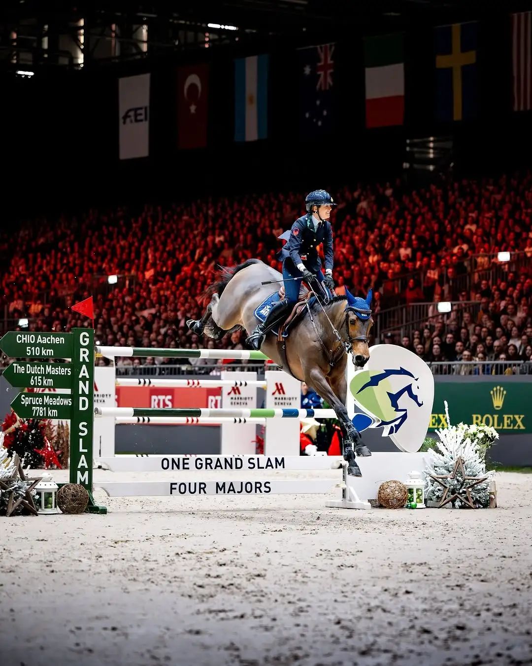 荷蘭騎手哈里·斯莫爾德斯(Harrie Smolders)搭檔“Monaco”奪得了2024年日內(nèi)瓦國際馬術(shù)節(jié)勞力士大獎賽冠軍。這位荷蘭馬術(shù)大師將于明年的3月16日回到他的祖國,挑戰(zhàn)在荷蘭馬術(shù)大師賽繼續(xù)追尋他的勞力士場地障礙賽大滿貫夢想。2025年荷蘭馬術(shù)大師賽勞力士大獎賽距今天整整3個月,所有人都拭目以待。 摘下亞軍的帽子 哈里·斯莫爾德斯搭檔“Monaco”在錦標賽以外的大獎賽中已經(jīng)戲劇性地獲得了11次第二名。這場比賽不僅讓他們奪得大滿貫首勝,也讓他們暫時摘下了持續(xù)亞軍的帽子。 哈里·斯莫爾德斯和“Monaco”是首輪比賽以及附加賽中首位獲得零罰分的人馬組合 去年,他們在這場比賽中只取得了第23名。對哈里·斯莫爾德斯來說,這次成功的逆襲來之不易。附加賽中首位出場,他說:“率先出場從來都不容易,這是因為競賽水平很高,每個騎手都能看到你的表現(xiàn),然后效仿你的路線,或者調(diào)整自己的策略。‘Monaco’值得今天這場勝利,在獲得這么多第二名之后,獲得冠軍頭銜是理所應當?shù)??!?/div> 茱莉亞·馬丁內(nèi)戈·馬奎特搭檔“Delta Del’ Isle”獲得亞軍 吉爾斯·托馬斯搭檔“Ermitage Kalone”獲得季軍 杰拉德的路線攔住了多位巨星 作為40對參賽人馬組合中第6對出場的,哈里·斯莫爾德斯搭檔“Monaco”率先以零罰分完賽。14道障礙,16次跳躍,16個挑戰(zhàn),包括第三道亞歷山大三世橋雙橫木、第五道利物浦雙重組合障礙和第七道勞力士三重組合障礙。 —————————— 24年日內(nèi)瓦國際馬術(shù)節(jié)勞力士大獎賽: 由勞力士呈獻的2024年日內(nèi)瓦國際馬術(shù)節(jié)勞力士大獎賽的直播由馬術(shù)雜志、馬術(shù)在線特別策劃、引進直播版權(quán)。日內(nèi)瓦國際馬術(shù)節(jié)是勞力士場地障礙賽大滿貫的一站,十度獲評“最佳室內(nèi)障礙賽”。 支持單位: 北京市馬術(shù)運動協(xié)會、深圳市馬術(shù)協(xié)會 主辦及版權(quán)引進: 《馬術(shù)》雜志、馬術(shù)在線 解說嘉賓: 著名音樂人、全國馬術(shù)冠軍 欒樹 《馬術(shù)》雜志創(chuàng)始人、主編 李艷陽 全運會馬術(shù)騎手 仉怡凡 主持人: 杭州亞運會中英文評論員 龐博 合作伙伴: 宇泉酒窖、兩萬年克東天然蘇打水、YAGYA、Janice馬文化藝術(shù)品 —————————— 雖然共有10對人馬組合取得了零罰分,但場地障礙賽中最強大的幾對人馬組合未能通過路線設(shè)計師杰拉德·拉赫特(Gerard Lachat)和格雷戈里·波多(Gregory Bodo)的考驗。 《馬術(shù)》雜志記者盧薪羽(Melissa Lu)采訪路線設(shè)計師杰拉德·拉赫特 當最后一道單橫木落下時,搭檔“Donatello”的法國騎手朱利安·埃帕拉德(Julien Epailard)和騎著“Bentley”的奇安·奧康納(Cian O’Connor)奪得勞力士大獎賽冠軍的夢想破滅。第九道障礙將唯一的勞力士場地障礙賽大滿貫得主、勞力士代言人斯科特·布拉什(Scott Brash)也擋在附加賽的門外。對于德國騎手、勞力士代言人丹尼爾·杜瑟(Daniel Deusser)和“Killer Queen”來說,76秒的允許時間讓他們無法順利取得零罰分。 哈里定下了自己的標準 在附加賽中,哈里·斯莫爾德思和“Monaco”首位登場,處于不利地位,他們以41.74秒率先以零罰分完賽。這位前世界第一障礙騎手像其他9位頂尖騎手發(fā)起了挑戰(zhàn)。 僅有三位女騎手獲得勞力士大獎賽參賽資格,茱莉亞·馬丁內(nèi)戈·馬奎特的表現(xiàn)很搶眼 為了追趕哈里·斯莫爾德斯和“Monaco”,亨瑞克·馮·??寺℉enrik von Eckermann)和“King Edward”以及佩德·得雷弗里克森(Peder Fredricson)和“Catch Me Not S”盡力縮小回轉(zhuǎn),但都在第二道障礙前拒跳。勞力士代言人馬丁·福斯(Martin Fuchs)和“Leone Jei”打落了兩道障礙。 吉爾斯·托馬斯(Gilles Thomas)搭檔“Ermitage Kalone”獲得季軍 最后,只有三對人馬組合以零罰分完賽。茱莉亞·馬丁內(nèi)戈·馬奎特(Giulia Matinnengo Marquet)搭檔“Delta Del’ Isle”獲得亞軍,吉爾斯·托馬斯(Gilles Thomas)搭檔“Ermitage Kalone”獲得季軍。 哈里·斯莫爾德斯賽后說:“步伐更大的馬,在附加賽中會更有一些優(yōu)勢,尤其是在這個賽場上。附加賽中有幾個小回轉(zhuǎn),而這些回轉(zhuǎn)還與利物浦障礙相結(jié)合。我在附加賽中,設(shè)立了很高的標準,超越起來很難,這也就是為什么后面的騎手冒了越來越多風險而最終發(fā)生失誤的原因。 |