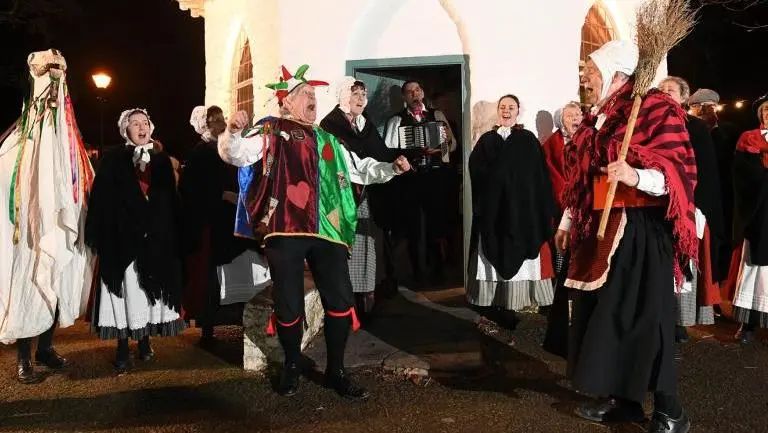 威爾士的部分地區(qū)至今仍在慶祝這一節(jié)日,狂歡者身著白布,身上裝飾著鈴鐺和絲帶,手拿馬頭骨。作為這項(xiàng)傳統(tǒng)的一部分,骷髏馬會(huì)在圣誕節(jié)前后造訪各家,向主人發(fā)起挑戰(zhàn),挑戰(zhàn)的內(nèi)容是用馬里·盧伊德的詩(shī)歌來(lái)押韻。挑戰(zhàn)通常會(huì)以骷髏馬被允許進(jìn)入家門(mén),并得到食物和飲料為結(jié)局。