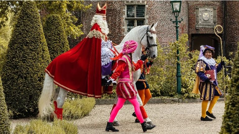 圣誕老人的形象基于圣尼古拉斯,他身穿傳統(tǒng)的白色主教長(zhǎng)袍,外面披著一件紅色長(zhǎng)斗篷。節(jié)日通常在 11 月中旬開(kāi)始,圣尼古拉斯會(huì)乘坐輪船(據(jù)說(shuō)是從西班牙出發(fā))抵達(dá)指定的海濱小鎮(zhèn)。在荷蘭,他每年都會(huì)“抵達(dá)”不同的港口,而在比利時(shí),他會(huì)“抵達(dá)”安特衛(wèi)普市。
