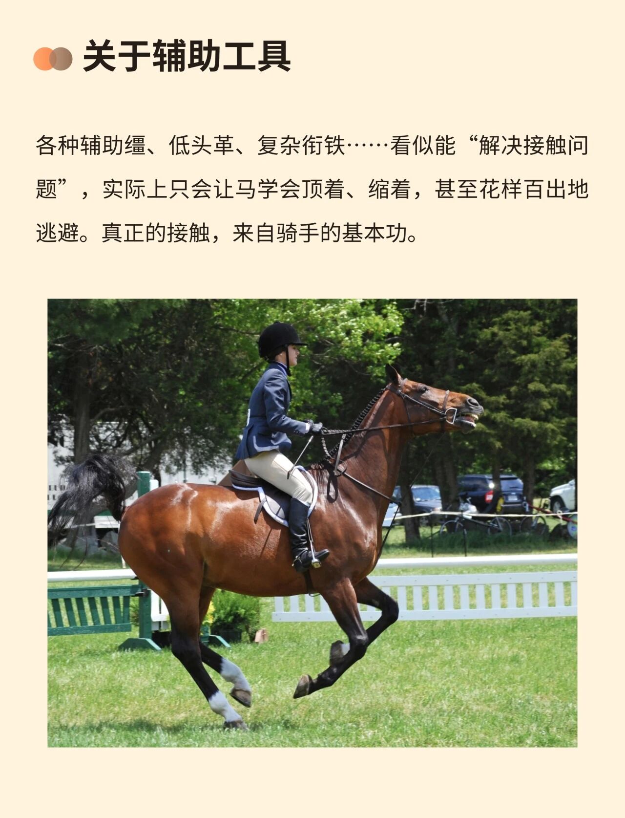 真正的接觸,應該是柔和、穩(wěn)定、有彈性的,而不是把馬“推”得像一輛不情愿前進的小推車。