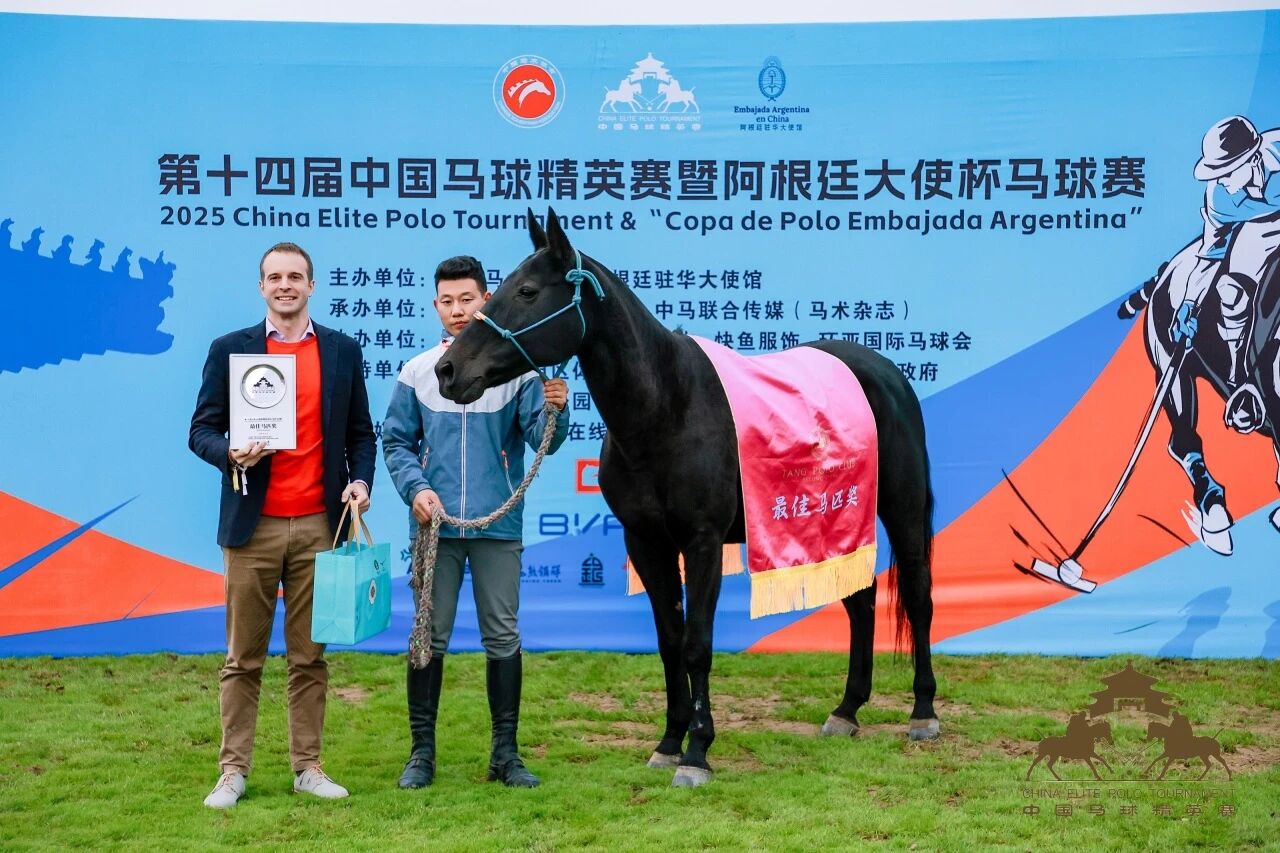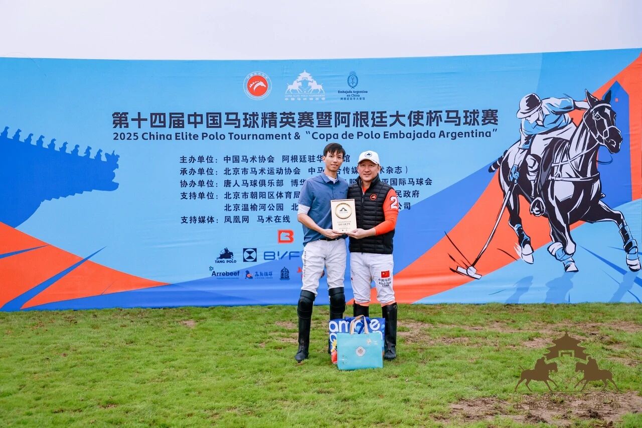 金秋十月,草色豐美,為期兩天的第十四屆中國馬球精英賽暨阿根廷大使杯馬球賽,于10月18日在地處北京溫榆河公園的北京市馬術(shù)運(yùn)動(dòng)協(xié)會(huì)馬球賽事中心圓滿收官。 經(jīng)過兩天四場比賽的角逐,最終博華隊(duì)將冠軍收入囊中,唐人隊(duì)榮獲優(yōu)勝獎(jiǎng),天津環(huán)亞隊(duì)和快魚隊(duì)獲得紀(jì)念獎(jiǎng)。唐人隊(duì)的劉書瀚收獲最佳新人獎(jiǎng)項(xiàng),博華隊(duì)的潤鍇(Rooney)榮獲本屆比賽最佳馬球手,最佳馬匹獎(jiǎng)由唐人隊(duì)的馬匹“Nochera”獲得。 第十四屆中國馬球精英賽 暨阿根廷大使杯馬球賽 主辦單位 中國馬術(shù)協(xié)會(huì)、阿根廷駐華大使館 承辦單位 北京市馬術(shù)運(yùn)動(dòng)協(xié)會(huì)、中馬聯(lián)合傳媒(馬術(shù)雜志) 協(xié)辦單位 唐人馬球俱樂部、博華資本 快魚服飾、環(huán)亞國際馬球會(huì) 支持單位 北京市朝陽區(qū)體育局 北京市朝陽區(qū)孫河鄉(xiāng)人民政府 北京朝陽文旅發(fā)展集團(tuán)有限公司 北京溫榆河公園 合作伙伴 利星行汽車、貴州習(xí)酒 贊助支持 宇泉酒窖、飛熊領(lǐng)鮮、Arre牛肉、 邯鄲銀瓷天成、禾木冰川水、 昭通上貝蘋果汁、中國參廣裕號(hào)、驛樂馬術(shù) 支持媒體 鳳凰網(wǎng)、馬術(shù)在線 賽事吸引了眾多領(lǐng)導(dǎo)嘉賓蒞臨現(xiàn)場,共同見證這一激動(dòng)人心的時(shí)刻。 出席的領(lǐng)導(dǎo)和嘉賓包括:阿根廷駐華大使馬致遠(yuǎn)先生、國家體育總局自行車擊劍運(yùn)動(dòng)管理中心副主任王峻燕女士、中國馬術(shù)協(xié)會(huì)秘書長鐘國偉先生、北京市朝陽區(qū)孫河鄉(xiāng)黨委書記張繼明先生、利星行汽車業(yè)務(wù)戰(zhàn)略及高端車部執(zhí)行總監(jiān)陶達(dá)利先生和貴州習(xí)酒銷售有限責(zé)任公司北京區(qū)副總經(jīng)理田景菊女士等。 中國馬術(shù)協(xié)會(huì)秘書長鐘國偉在開幕致辭中表示:2025年中國馬球精英賽暨阿根廷大使杯馬球賽在溫榆河公園馬球賽事中心舉辦,這既是馬球運(yùn)動(dòng)踐行“健康中國”戰(zhàn)略、推動(dòng)體育事業(yè)高質(zhì)量發(fā)展的一次生動(dòng)實(shí)踐,也是中阿體育人文交流的一項(xiàng)重要活動(dòng)。 這場賽事,不僅是馬球運(yùn)動(dòng)激情與技巧的對(duì)決,更是以體育為橋、以文化為紐帶的中阿交流新舞臺(tái)。我們期待,中阿友誼在駿馬飛馳的賽場間持續(xù)升溫,在吶喊與喝彩里為兩國體育人文交流寫下嶄新的注腳! 阿根廷駐華大使馬致遠(yuǎn)在開幕致辭中表示:感謝中國馬術(shù)協(xié)會(huì)對(duì)賽事的鼎力支持,特別感謝鐘國偉先生、劉詩來先生、李艷陽先生和劉楠先生,他們在推廣馬球運(yùn)動(dòng)促進(jìn)阿中兩國友誼方面展現(xiàn)出遠(yuǎn)見卓識(shí),為兩國交流聚集了新的活力。 同時(shí)也感謝各國外交使團(tuán)成員和眾多中國朋友參加今日的盛會(huì),諸位的到來正是馬球運(yùn)動(dòng)所蘊(yùn)含的友誼與理解精神的生動(dòng)體現(xiàn)。 2024年12月,阿根廷馬球協(xié)會(huì)與中國馬術(shù)協(xié)會(huì)簽署合作協(xié)議,預(yù)示著兩國在馬球領(lǐng)域合作的開始,今天我們共慶的阿根廷大使杯馬球賽,不僅是一場賽事,更是通過馬球促進(jìn)兩國文化與體育交流的橋梁。 10月18日決賽的開幕式上,四支參賽隊(duì)伍從場地兩側(cè)隆重入場,由利星行汽車提供的邁巴赫GLS和G500兩款車領(lǐng)陣。在主持人蔡猛與解說肖力的介紹下,四支球隊(duì)閃亮登場并紛紛向觀眾致意。 本屆賽事共有四支隊(duì)伍參賽:唐人隊(duì)、博華隊(duì)、快魚隊(duì)、天津環(huán)亞隊(duì),匯聚了70后老將與90后、00后新銳球員。 唐人隊(duì)由劉詩來、劉書瀚、寶音德力根(Bao Yin)和Junior組成;博華隊(duì)的陣容包括徐文博、文萊王子(His Royal Highness Prince Abdul Qawi of Brunei Darussalam)、潤鍇(Rooney)以及費(fèi)楚·費(fèi)爾南多(Rafael Fernando Erreguerena)組成;快魚隊(duì)則由饒忠明、李艷陽、魏伯贊、羅德里格·布拉達(dá)(Rodrigo Bauzada)組成;天津環(huán)亞隊(duì)由關(guān)昊云、曹思遠(yuǎn)、布倫別力克(Abu)、托馬斯·包蒂斯塔·迪亞茲(Tomas Bautista Díaz)攜手出戰(zhàn)。 另外,本次賽事也特別邀請了來自阿根廷的國際級(jí)裁判胡安·曼努埃爾·多明格斯(Juan Manuel Dominguez)執(zhí)裁,確保比賽的專業(yè)、公平與公正。 經(jīng)過前一天的激烈鏖戰(zhàn),10月18日決賽在唐人隊(duì)與博華隊(duì)之間展開。隨著國家體育總局自行車與擊劍管理中心副主任王峻燕女士一記精彩的開球,決賽正式開始。 博華隊(duì)開局發(fā)揮穩(wěn)定,一路將比分打成5:4,并將優(yōu)勢保持到第二節(jié)結(jié)束。 唐人隊(duì)也展現(xiàn)出了不可小覷的實(shí)力,將比分咬得很緊,一度將比分追成5比5平,但博華隊(duì)最終還是以6:5贏下比賽。 央視主持人蔡猛(左)與現(xiàn)場解說肖力(右) 比賽的精彩間隙,觀眾們化身為“草坪探險(xiǎn)家”,參與到馬球觀賽的獨(dú)特環(huán)節(jié)“踩草坪”中。大家漫步在賽場上,一邊細(xì)心地將馬蹄留下的印記復(fù)原,一邊在綠茵中搜尋神秘的“寶藏”——酒瓶塞,尋得者即可兌換精美獎(jiǎng)品。 歡聲笑語與掌聲交織,讓賽場瞬間變成一個(gè)充滿驚喜的“尋寶樂園”,將這份獨(dú)具儀式感的參與體驗(yàn)推向