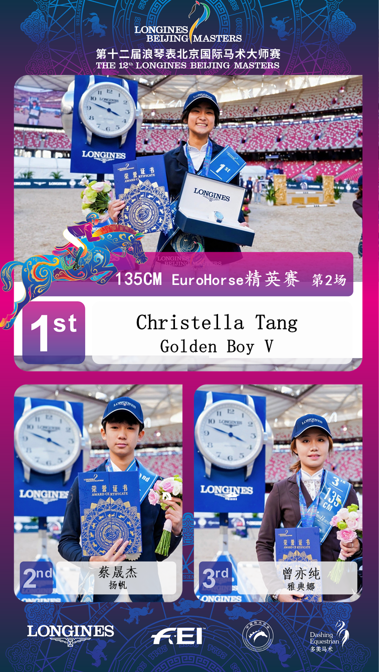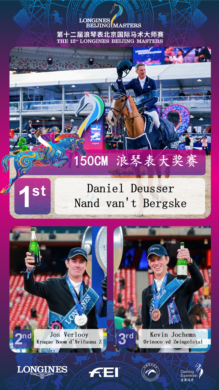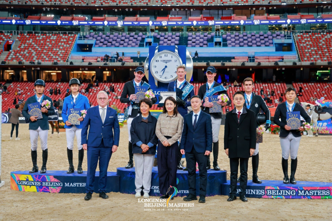 [2025年10月19日]第十二屆浪琴表北京國際馬術(shù)大師賽圓滿完成收官日的爭奪戰(zhàn)!從100CM團(tuán)體賽的默契協(xié)作,到105CM公開賽的精準(zhǔn)爭時;從135CM EuroHorse精英賽決賽的激烈角逐,到150CM浪琴表大獎賽的壓軸對決,賽場上每一次呼吸都交織著信任的共振,每一個跨越都標(biāo)記著信念的刻度。 上午8:00的100CM團(tuán)體賽中,悅林馬術(shù)憑借三位騎手的出色發(fā)揮成功登頂!騎手侯僑軒策騎擎天柱、翁敬涵搭檔念月、顧馨悅與吉爾協(xié)同發(fā)力,以4罰分、176.29秒的成績奪冠。海外騎際馬術(shù)以4罰分、179.85秒獲得亞軍,中聯(lián)騎士聯(lián)盟以4罰分、194.85秒摘得季軍!每支戰(zhàn)隊的人馬同心,都是賽場最動人的風(fēng)景。 上午12:45,105CM公開賽圓滿完賽!騎手張羽翔策騎“辰美麗”憑借精彩表現(xiàn)以零罰分、48.60秒的出色表現(xiàn)奪得冠軍!安佳琪策騎“恩九拉”以零罰分、49.24秒的成績獲得本場比賽亞軍;沈紫昕策騎“小灰灰”以零罰分、50.22秒收獲季軍。 下午13:50開賽的EuroHorse精英賽135CM中,澳大利亞騎手Christella Tang與策騎Golden Boy V以零罰分、48.20秒的驚艷表現(xiàn)斬獲冠軍,人馬配合如行云流水,每一次躍起都是力與美的極致展現(xiàn)。蔡晟杰與“揚帆”以4罰分、45.64秒收獲亞軍,曾亦純搭檔“雅典娜”以4罰分、50.23秒的成績位列季軍。 下午16:40,壓軸的150CM浪琴表大獎賽更將賽事推向巔峰,爭奪激烈!11對人馬組合成功晉級附加賽,不僅展現(xiàn)了馬術(shù)運動的獨特魅力,更讓現(xiàn)場及屏幕前的觀眾全程熱血沸騰!德國騎手丹尼爾·杜瑟(Daniel Deusser) 策騎“Nand van't Bergske”歷經(jīng)一輪爭時賽與附加賽的極致考驗,最終以0罰分、46.39秒的完美表現(xiàn)力壓群雄,加冕冠軍!這場終極較量不僅是對技術(shù)的淬煉,更是對心態(tài)的頂級考驗,丹尼爾·杜瑟的勝利完美詮釋了人馬合一的巔峰境界。喬斯·維羅伊(Jos Verlooy)與戰(zhàn)駒Kraque Boom d'Avifauna Z以0罰分、47.59秒的出色成績斬獲亞軍;凱文·喬赫姆斯與(Orinoco vd Zwingelstal) 以0罰分、47.82秒收獲季軍。 當(dāng)最后一道騰躍劃過賽場,2025第十二屆浪琴表北京國際馬術(shù)大師賽正式落下帷幕!這場匯聚頂尖騎手的馬術(shù)競技盛宴,以速度與優(yōu)雅的極致碰撞、人馬同心的默契,為所有觀眾留下了諸多直擊人心的震撼瞬間。 圖|150CM 浪琴表大獎賽頒獎典禮 圖|150CM 浪琴表大獎賽冠亞季軍慶祝儀式 讓我們共同期待明年十月再度相聚鳥巢,共同見證新傳奇的誕生,續(xù)寫馬術(shù)運動的璀璨篇章 |